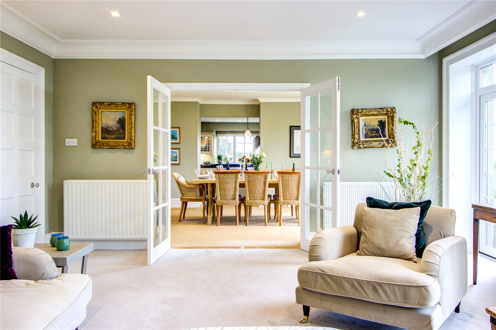 Thoughtfully designed for modern living and spread across two light-filled floors, it provides generous and versatile accommodation, including three elegant reception rooms and a spacious farmhouse-style kitchen, ideal for both family life and entertaining.