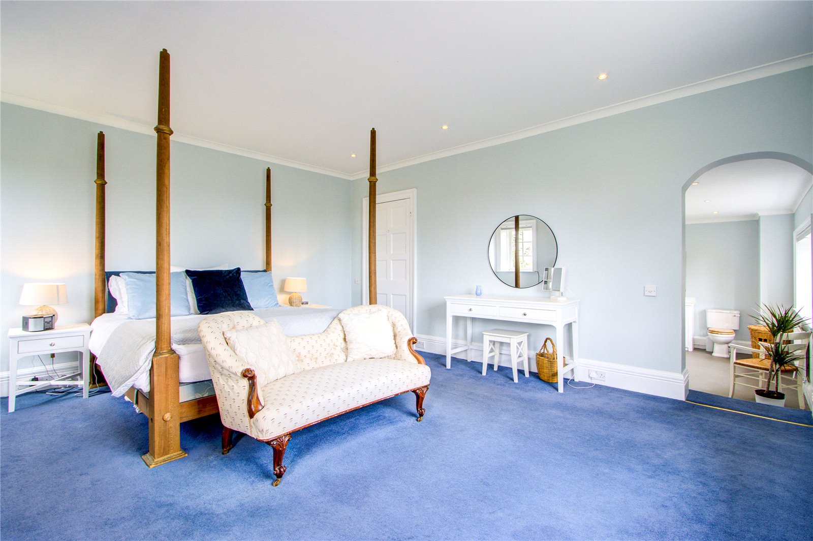 A graceful staircase leads to the first floor, where you’ll find five beautifully proportioned bedrooms, each tastefully decorated and bathed in natural light. The principal bedroom suite is particularly impressive, offering generous space, a stylish en-suite bathroom and an excellent range of fitted wardrobes. A convenient rear staircase leads to the back hallway by the kitchen, ideal for popping down to get an early morning cup of tea. The remaining bedrooms are equally well-appointed, ideal for children, guests, or even a dedicated home office and are served by two additional high-quality bathrooms, ensuring flexibility for a growing family or visiting friends.