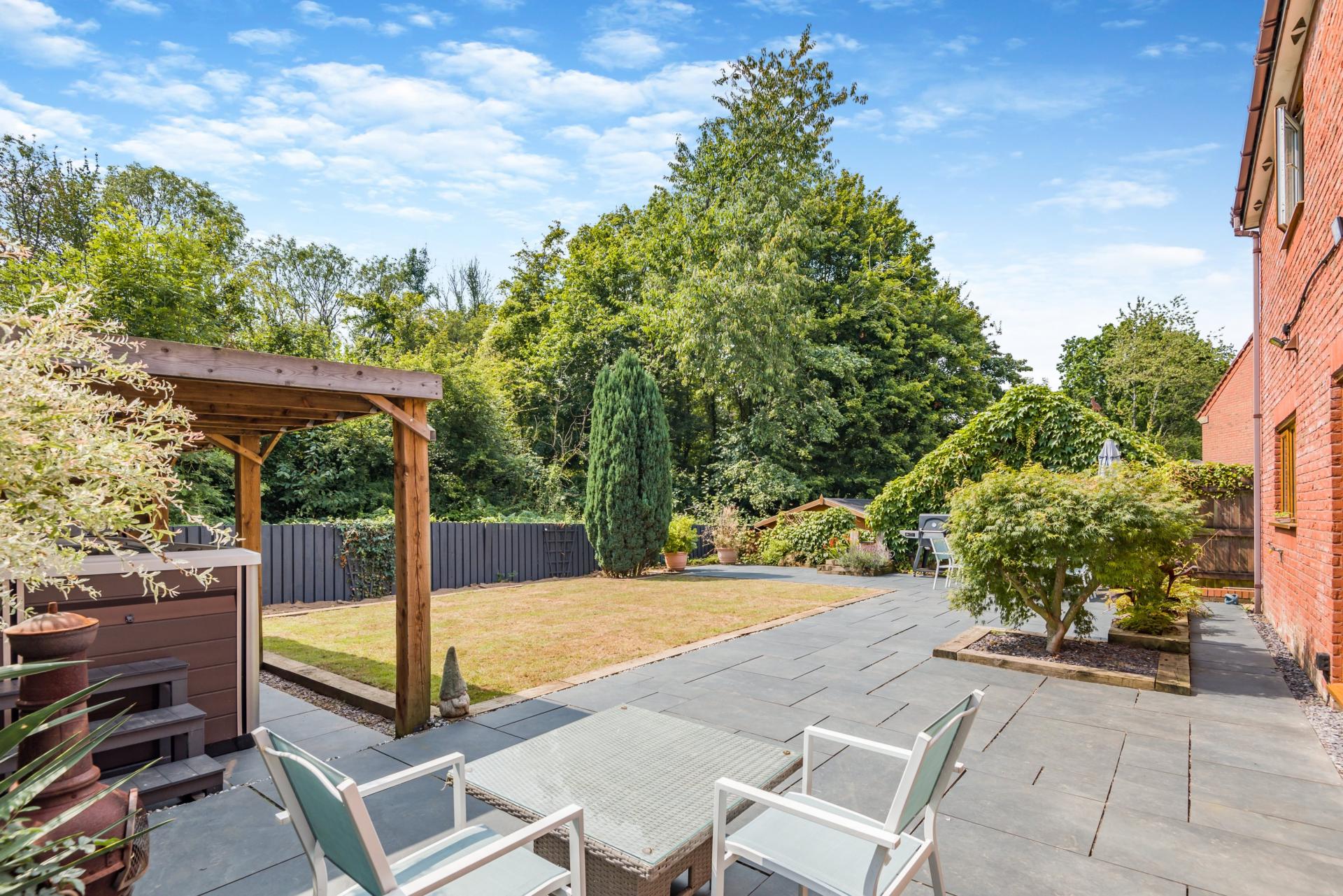 Outside - The house is approached over a brick paved driveway which provides off-road parking for two vehicles, in front of the integral double garage with remote control roller garage door. Alongside the driveway is an area of level lawn with mature borders and shrubs. The enclosed, landscaped, rear garden includes an area of recently re-turfed natural lawn and a large paved patio. An impressive feature is the swim spa hot tub (this is available subject to negotiation) which is housed in an attractive dark wood pergola.