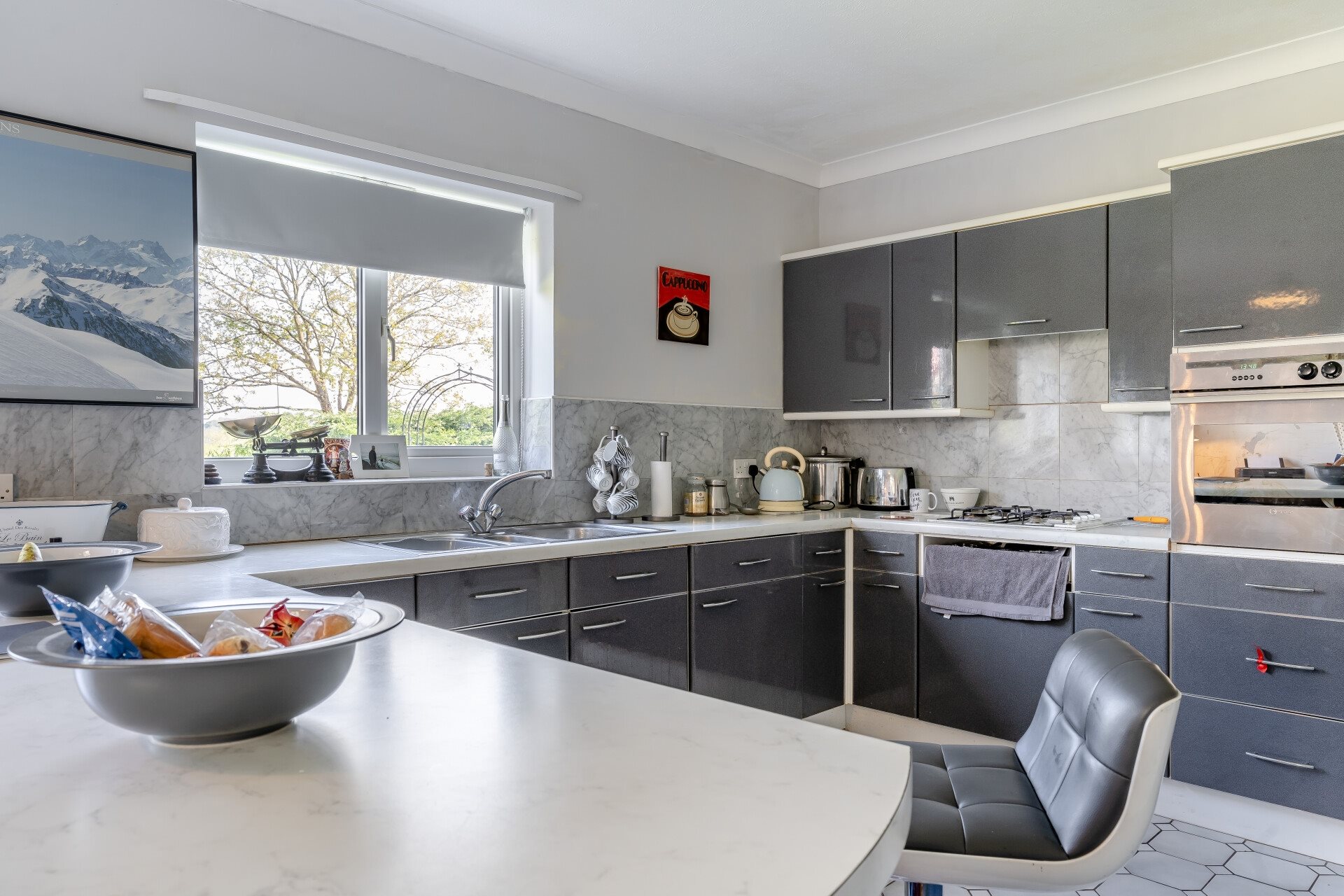 Flowing seamlessly from the reception space is a well-appointed kitchen and dining area, complete with integrated appliances and an adjoining utility room to keep daily life effortlessly organised.