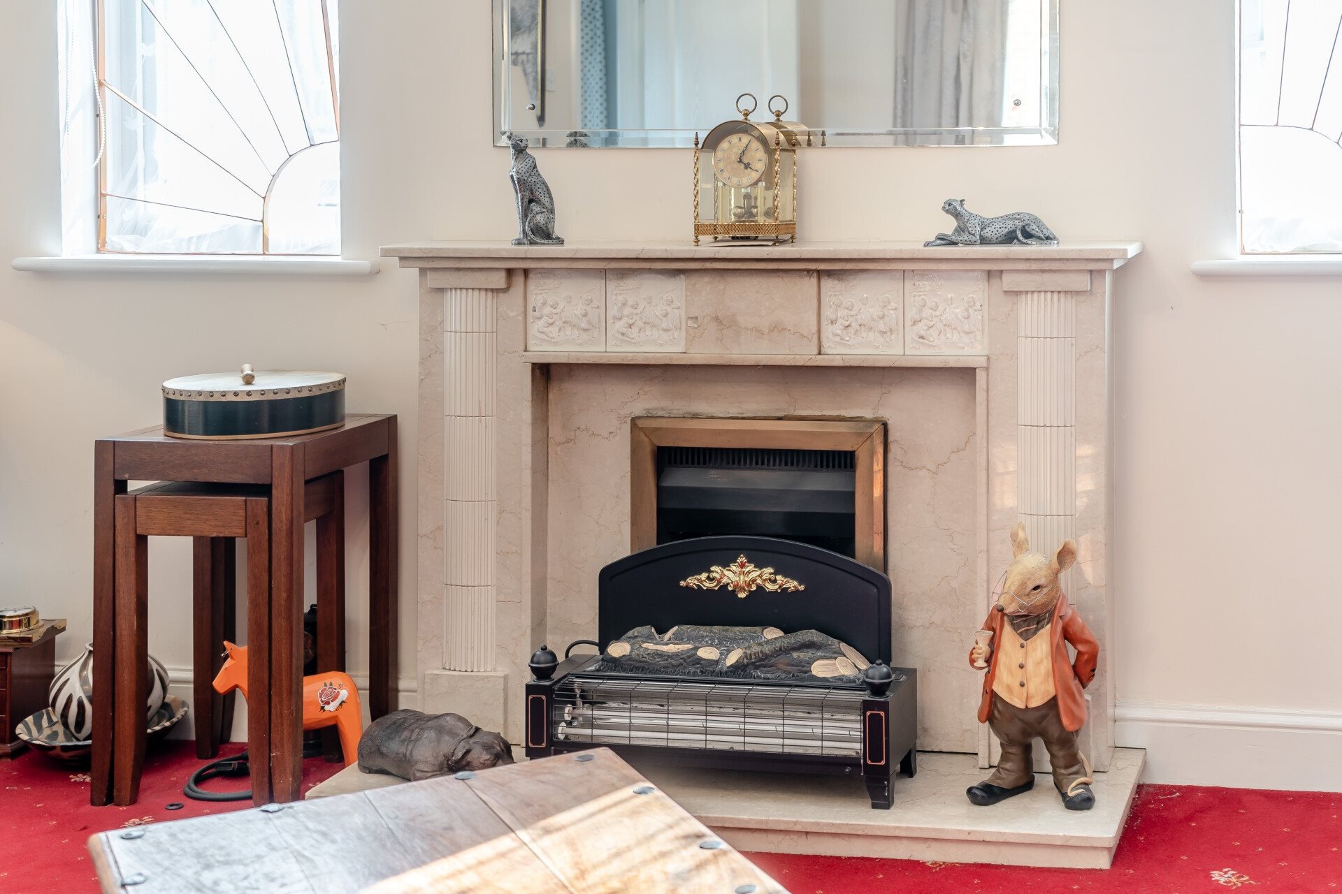 Upon entering the property, a wide and airy hallway provides an immediate sense of scale and elegance. From here, two substantial reception rooms branch off both ideal for formal and informal living. The first, a refined sitting room, boasts a striking bay window framing views of the mature front garden, alongside a handsome fireplace that anchors the space. The second reception area features its own fireplace and offers the flexibility of multiple seating zones perfect for entertaining or relaxing as a family.
