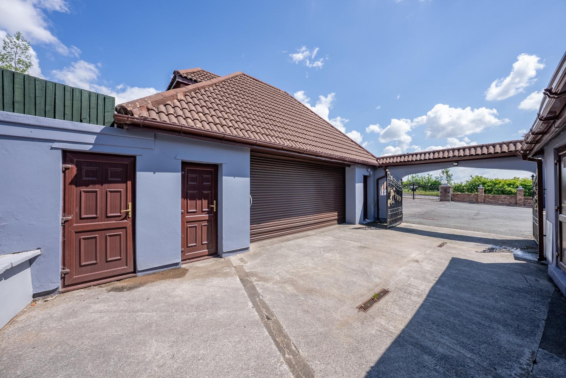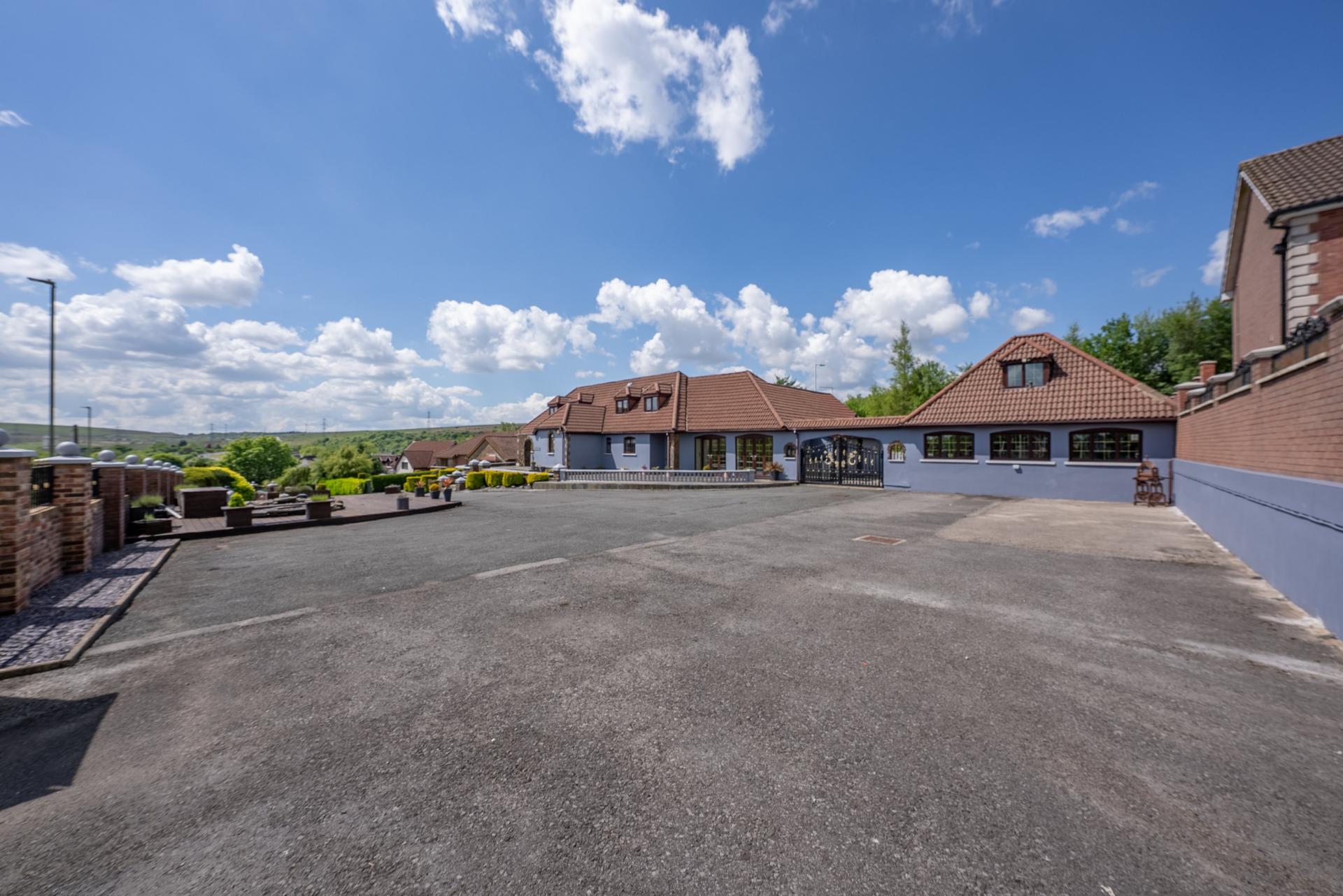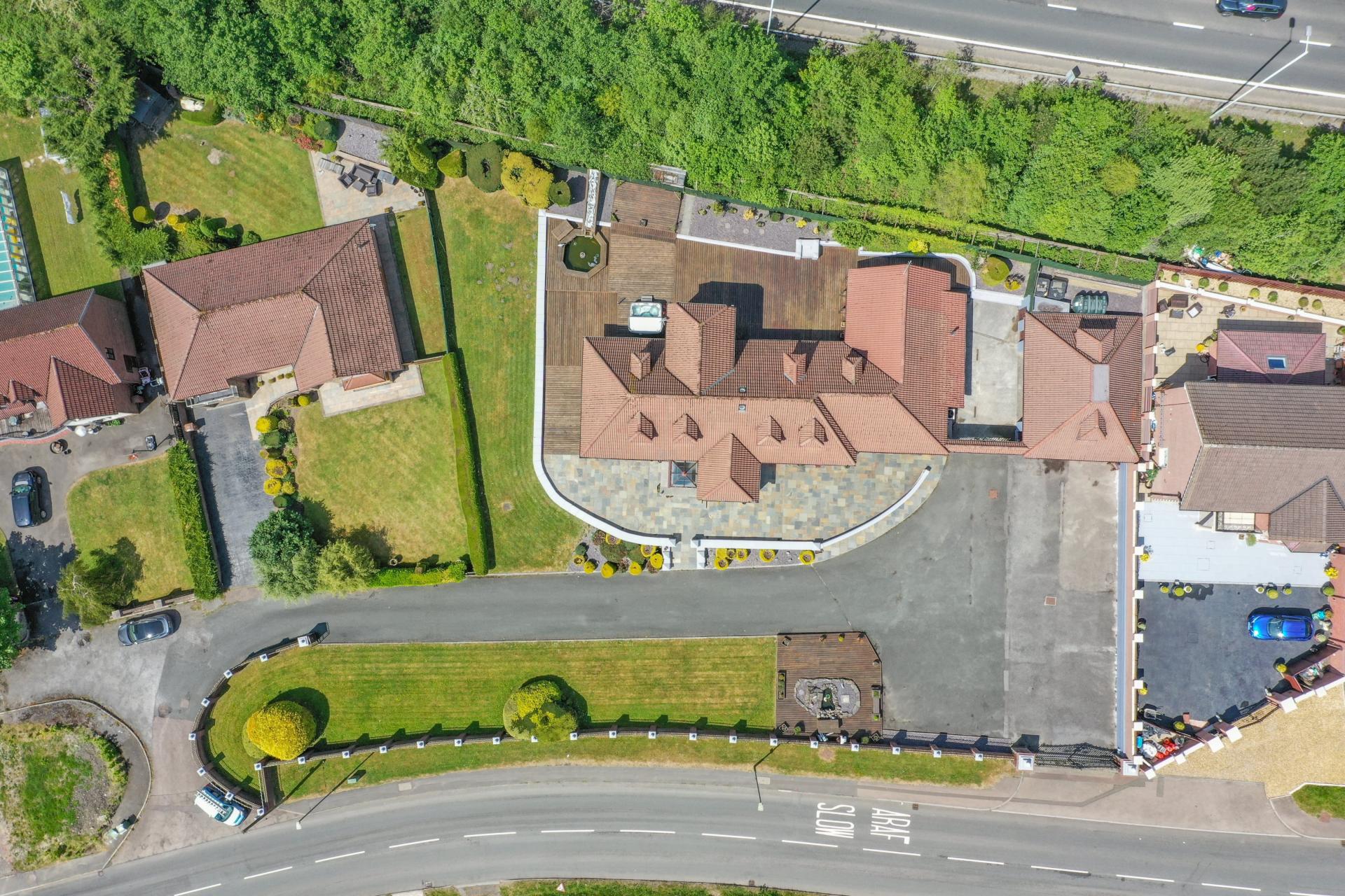 Outside - Externally, the property continues to impress. A detached double garage with electric doors is accompanied by two versatile storage rooms and an upper-level gym or home office ideal for remote working, fitness, or creative pursuits. A double gated driveway ensures generous private parking, while the gardens are thoughtfully landscaped to provide a tranquil haven, with lush lawns, patio terraces, a decked seating area, and two ornamental ponds all framed by mature trees and mountain vistas.