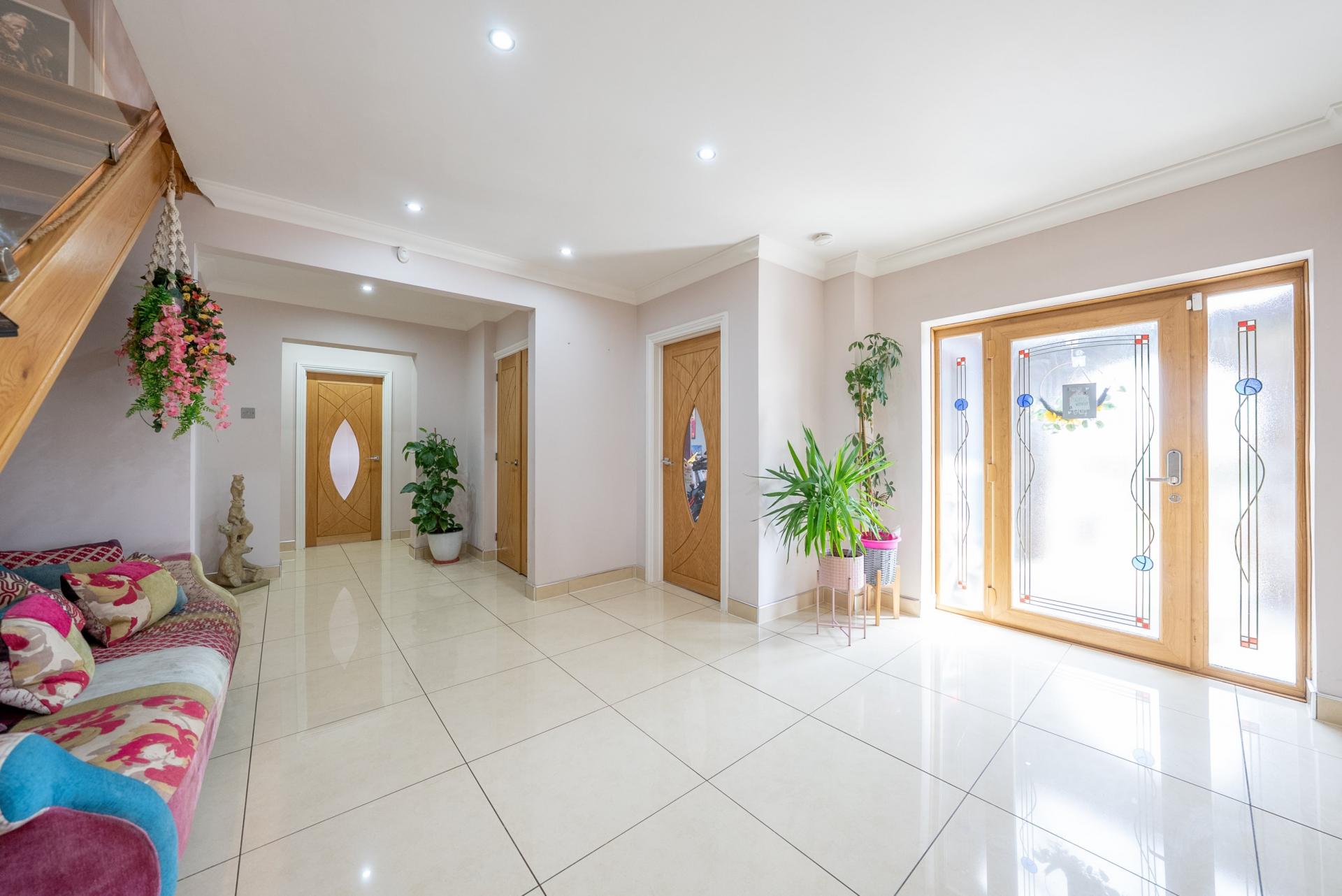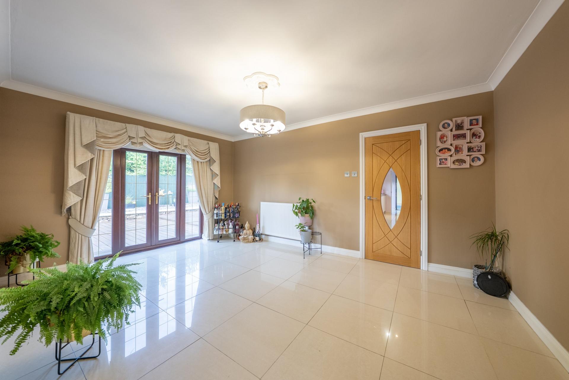 Outside, the expansive gardens have been beautifully landscaped to complement the house itself. To the front of the house, a spacious driveway, framed by lush shrubs and trees on one side and a beautiful koi pond and lawn on the other, provides ample parking for family and guests alike. Our rear garden is an oasis of calm, featuring another serene koi pond and extensive decking and stone slabbed areas ideal for hosting barbecues and al fresco get-togethers under the sun, which graces the space from dawn to dusk.