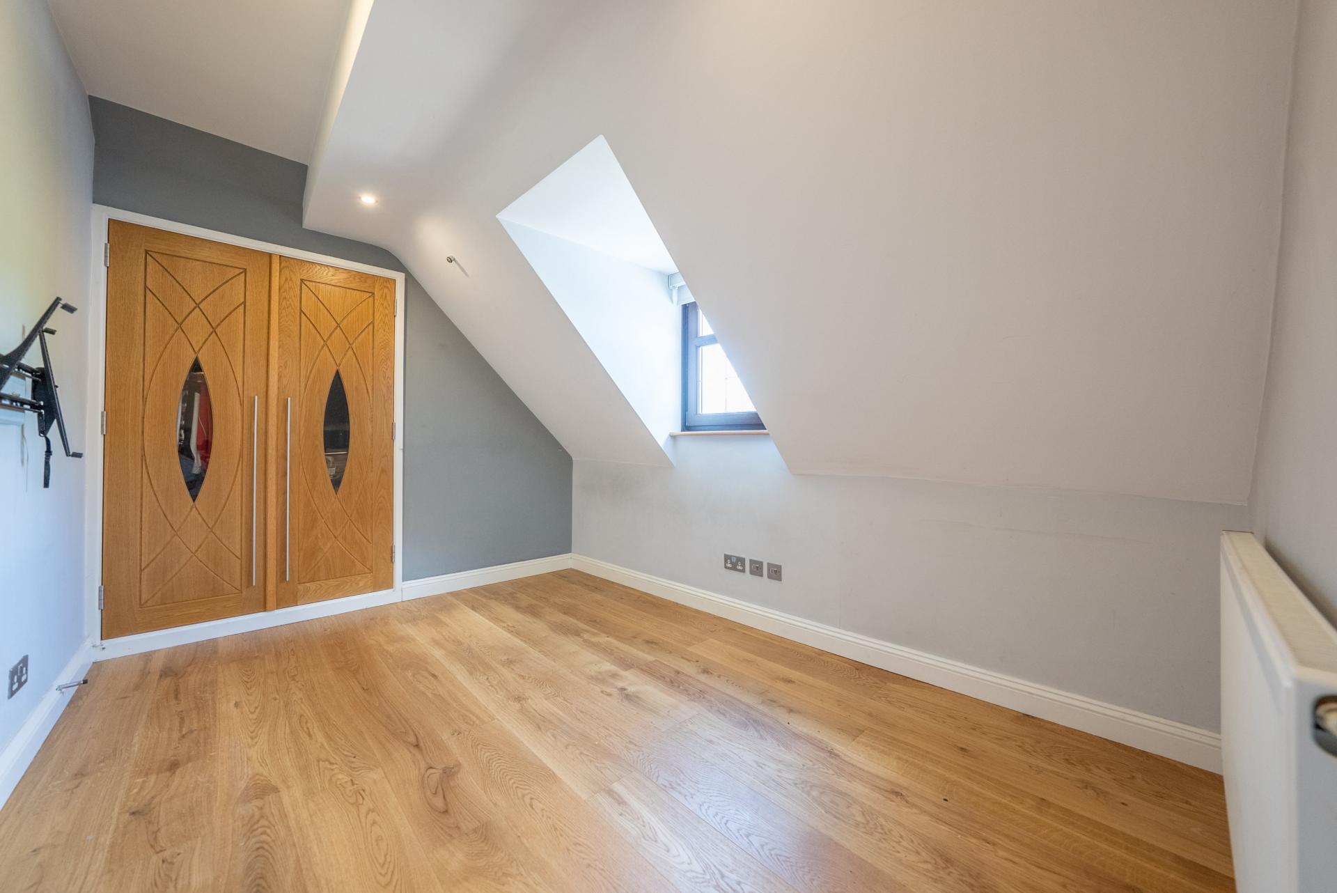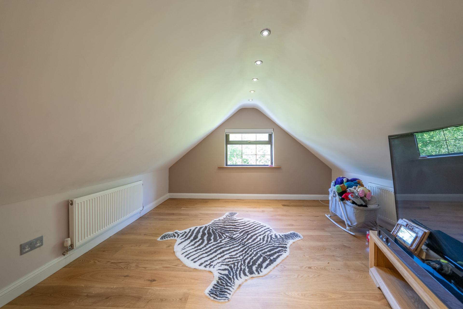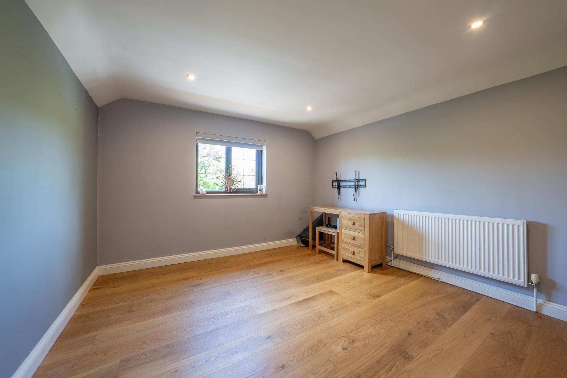 Upstairs, five beautifully proportioned bedrooms provide serene sanctuaries for rest and relaxation. The principal suite benefits from dual-aspect windows, a bespoke dressing room, and an additional secret 'media' room just off it ideal for young families or as a private retreat. A contemporary family shower room completes the first-floor accommodation, finished to an impeccable standard.