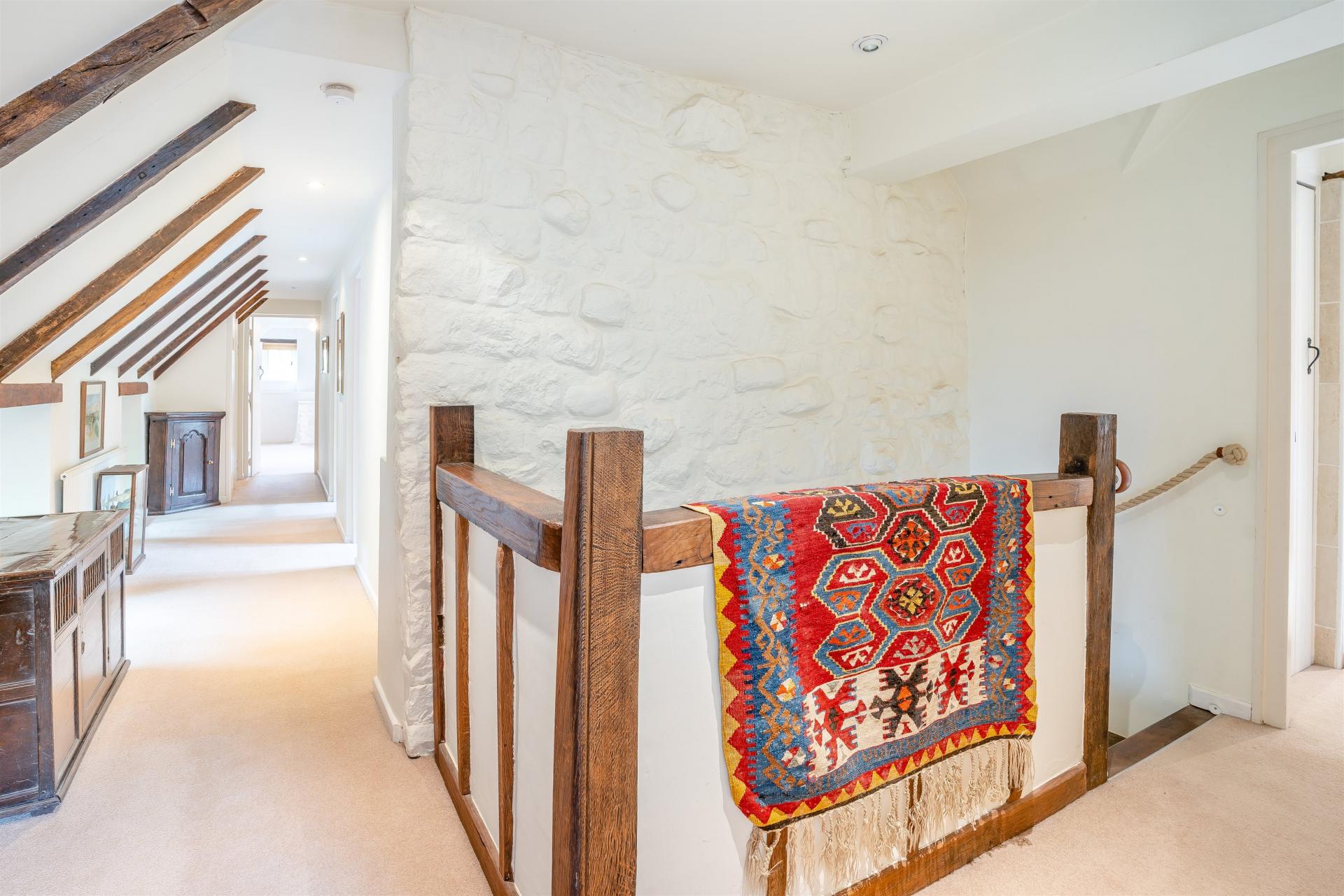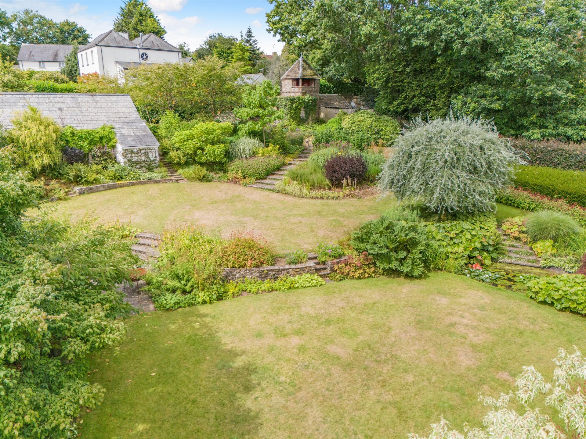 Outside - Externally, Croesllanfro Farm impresses with sweeping landscaped gardens, winding lawns and mature planting that offer privacy and visual delight. Off the main house, a separate studio provides versatile space ideal as a home office, art studio or guest accommodation while a charming folly and grotto add visual intrigue and leisure appeal. A gated driveway leads to a substantial double garage, offering both security and convenience. The garden layout creates natural zones for entertaining, quiet retreat or imaginative play. Situated on the grounds of the original farm, the plot benefits from a sense of rural space despite proximity to Newport and local facilities.