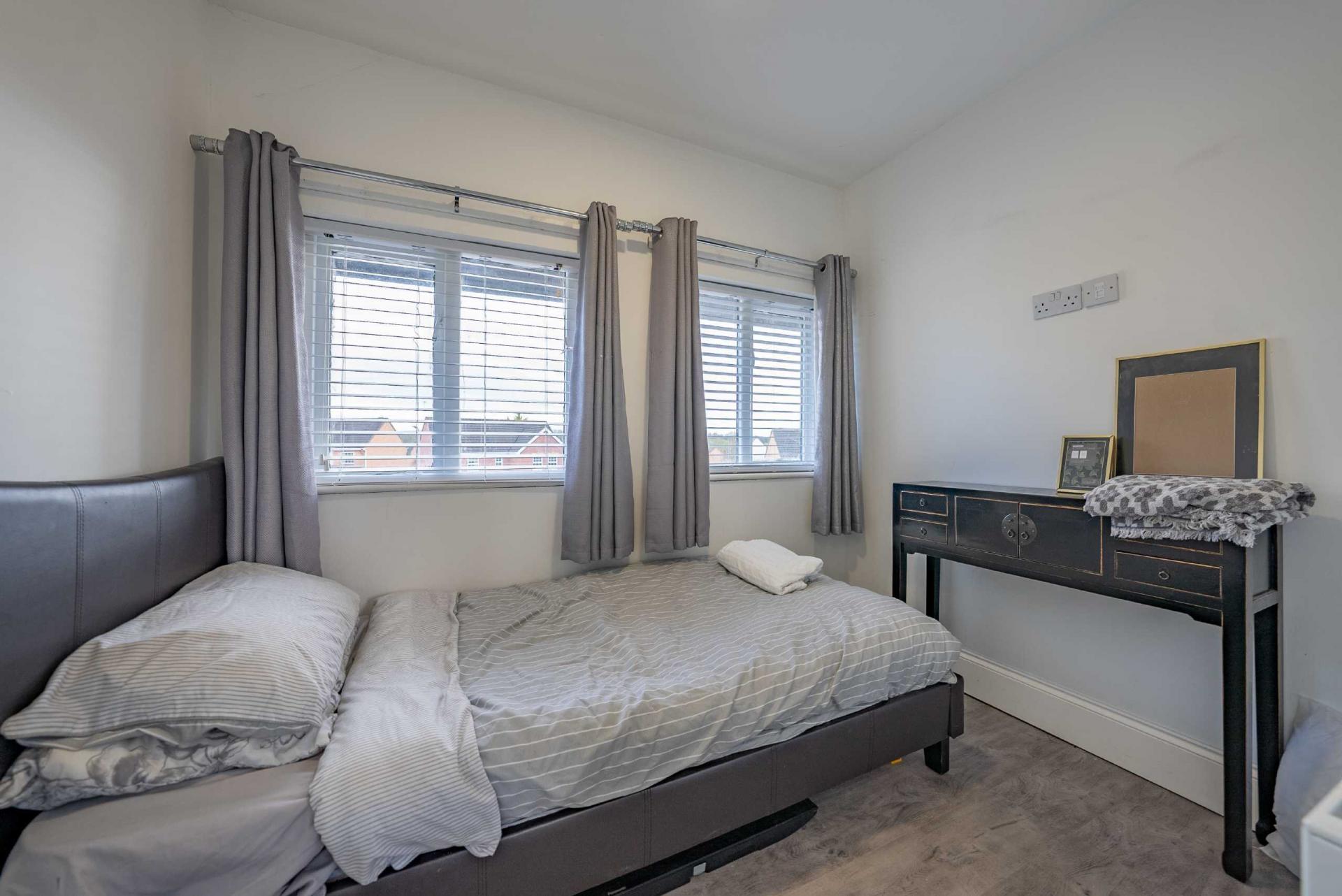 BEDROOM FOUR - 3.70m x 2.63m - A double room with two front facing windows, laminate flooring, radiator, fitted wardrobe, ceiling downlighter.