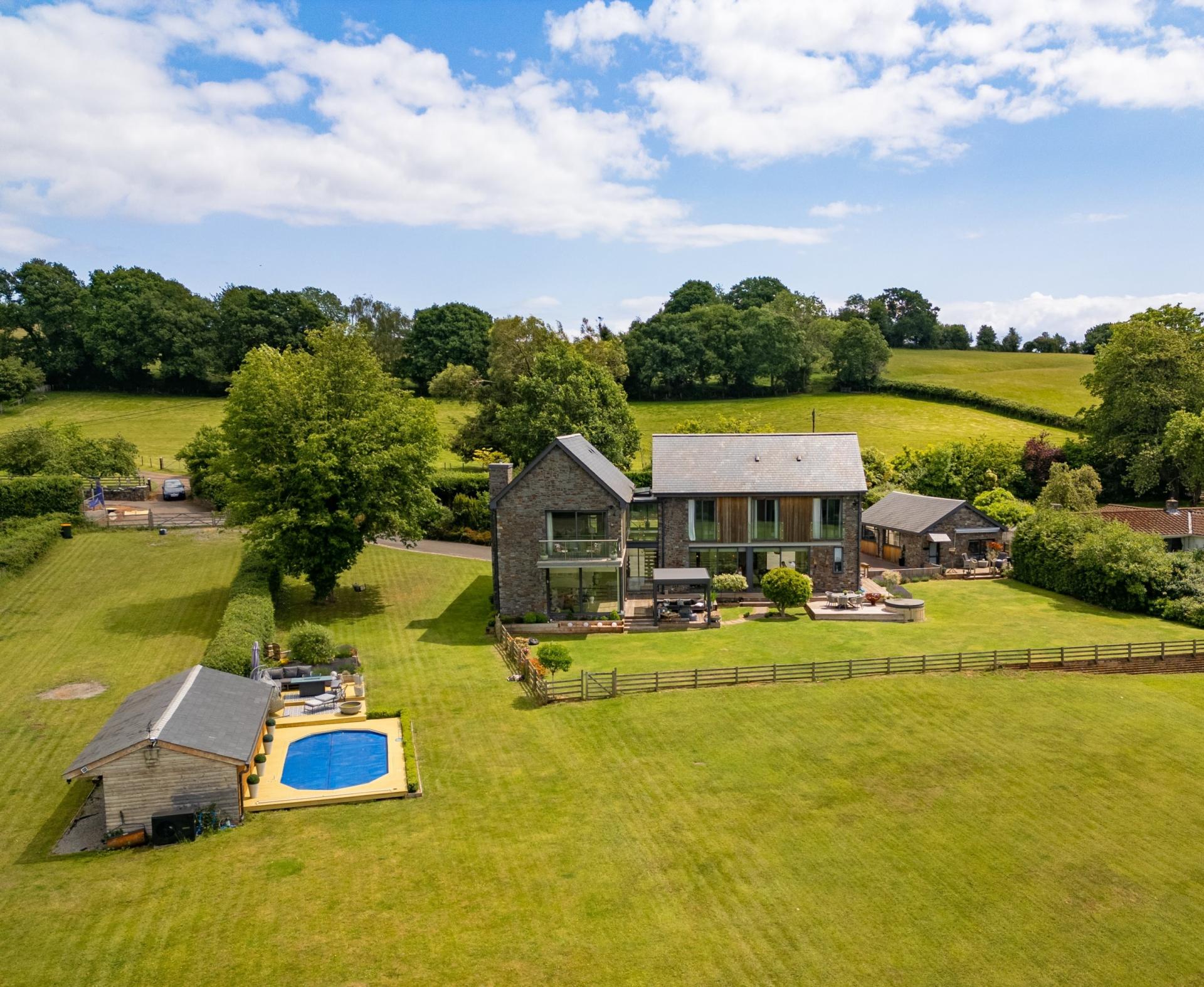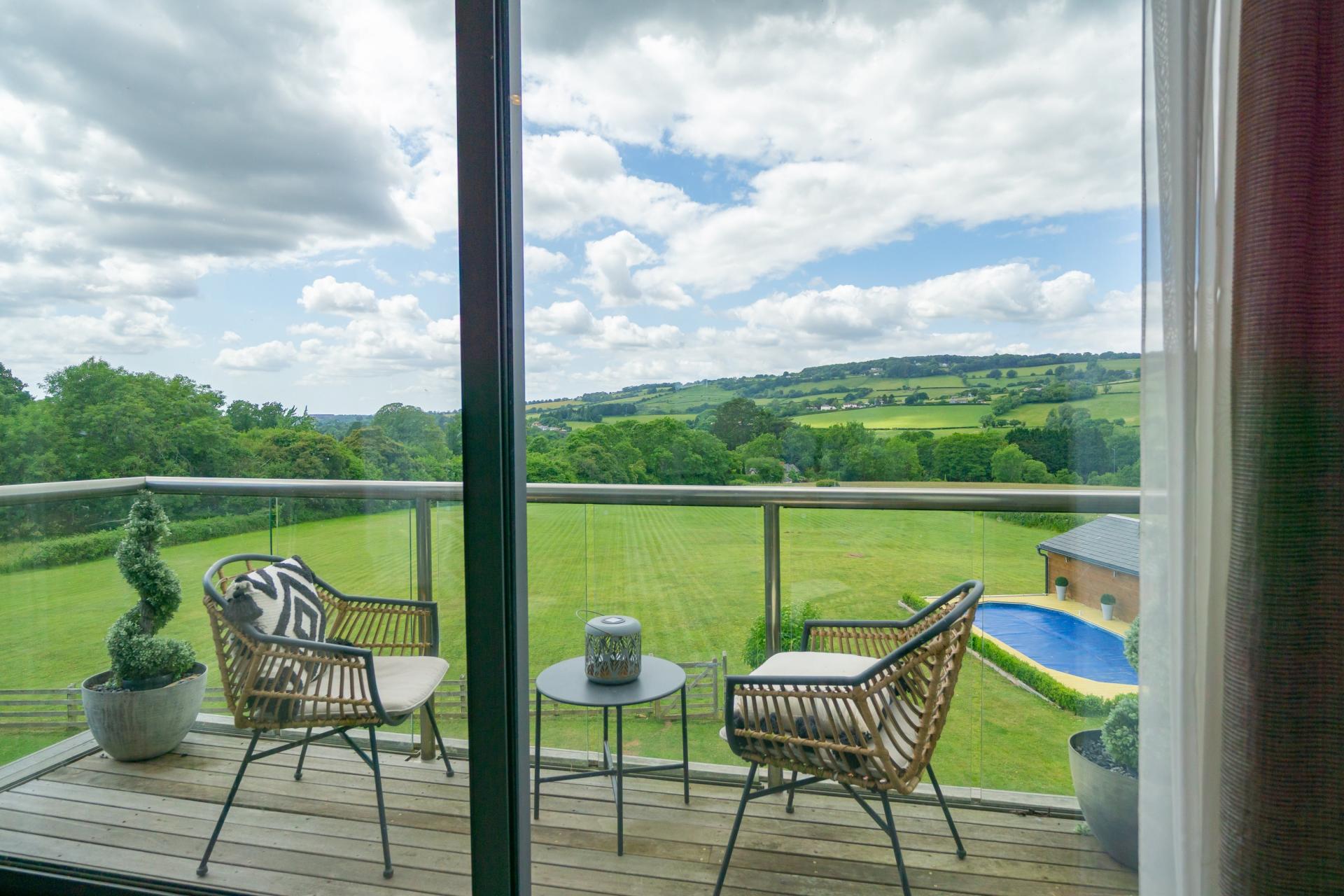 Outside - Step outside and you'll discover a private oasis designed for both relaxation and recreation. Set in nearly three acres, the grounds include a heated outdoor swimming pool, hot tub, and expansive decked terrace perfect for al fresco entertaining. There are stables, sweeping lawns, and uninterrupted views of the surrounding countryside, offering a true sense of rural tranquillity. Whether it's morning coffee on the balcony or sunset swims, this is a home where every outdoor moment feels special.