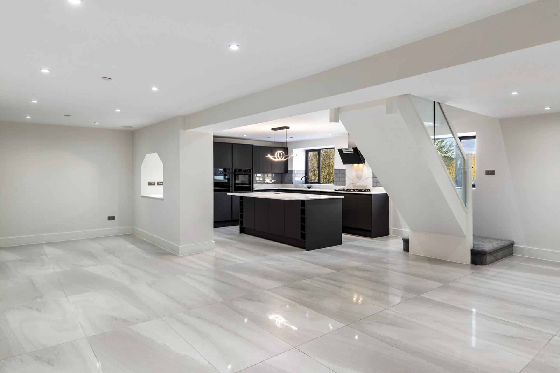 From the moment you enter, this home's high-spec renovation is evident. The heart of the house is the impressive open-plan kitchen, dining, and living space. Perfect for family gatherings or entertaining guests, the space is enhanced by a stunning feature glass staircase leading to the first floor.