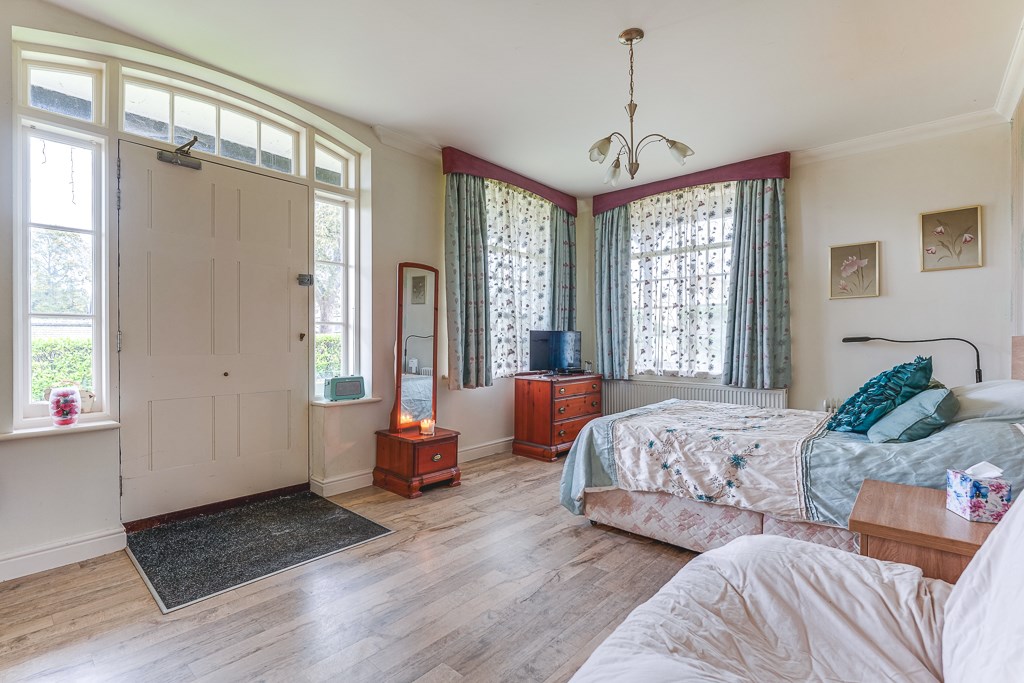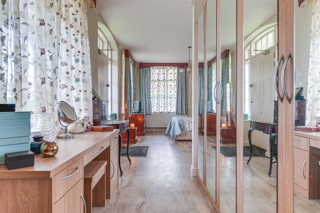 The large, ground floor, bedroom exudes an air of luxury and comfort, designed to provide both functionality and aesthetic appeal. The master bedroom has dual aspect windows which allow ample natural light to flood the room during the day, creating an inviting and airy atmosphere. The overall design of this large bedroom with a dressing area, fitted wardrobes, and an en-suite reflects a harmonious blend of comfort and functionality. On the ground floor you will also find a cloakroom and storage cupboards.