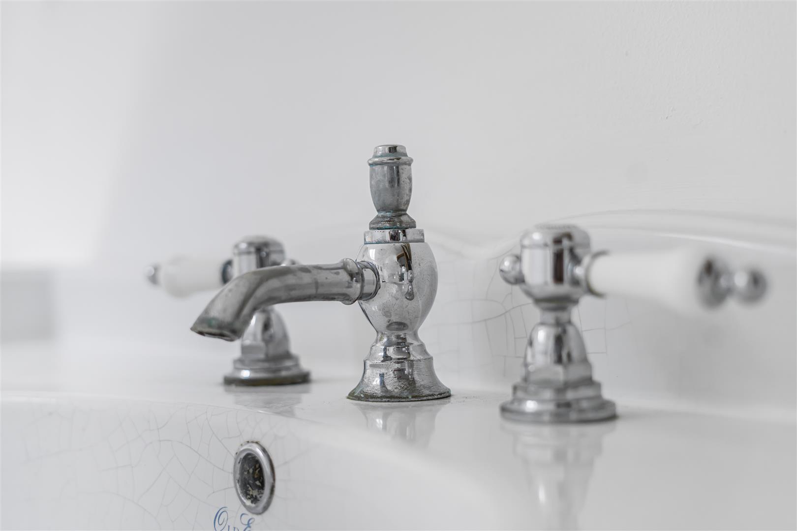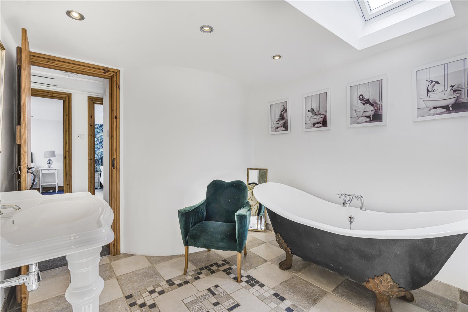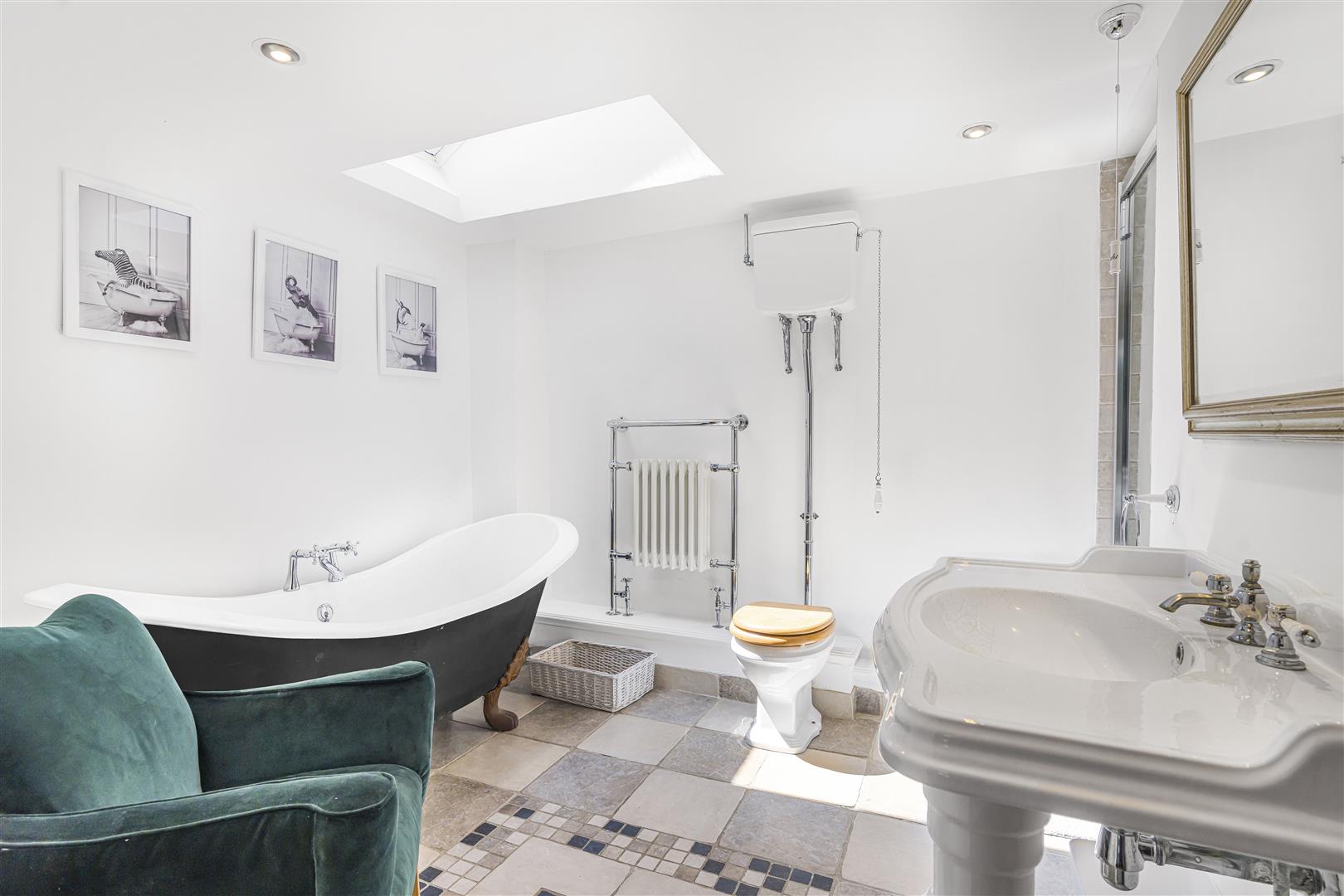 The spacious bathroom is particularly luxurious with a roll-top bath and separate shower.