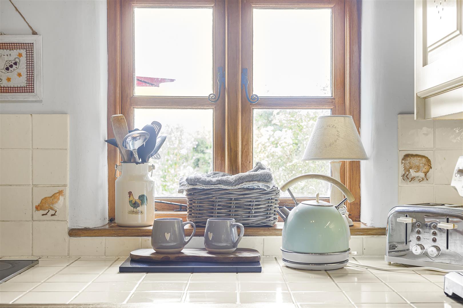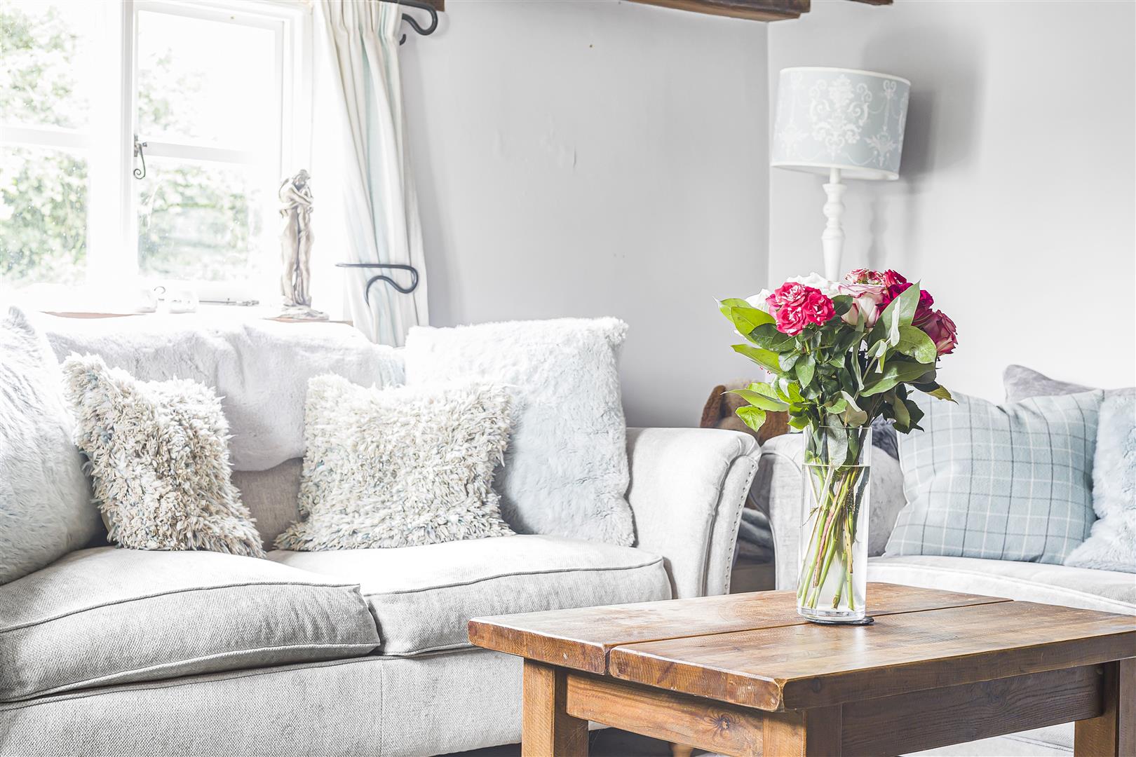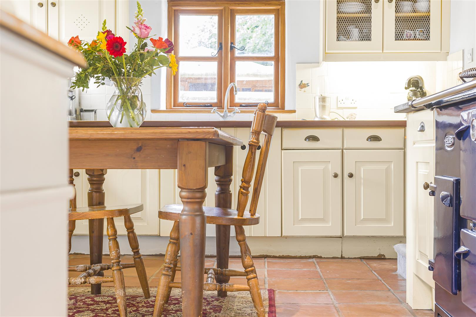 A pretty entrance porch with thatch over sets the scene for what is to follow in this delightful period cottage.