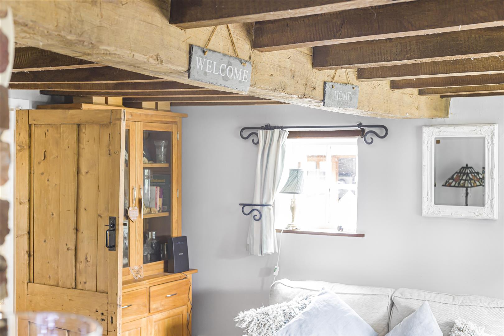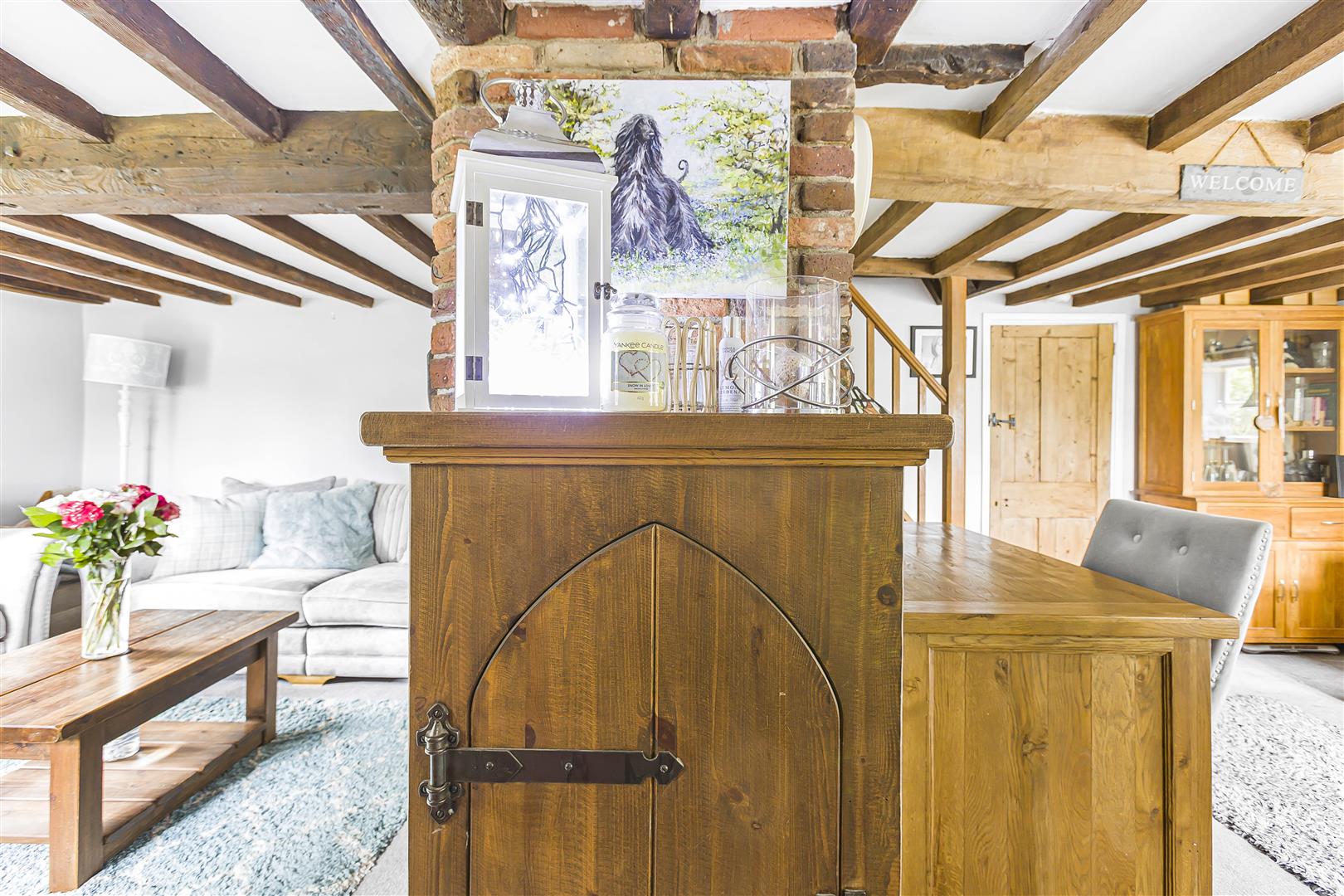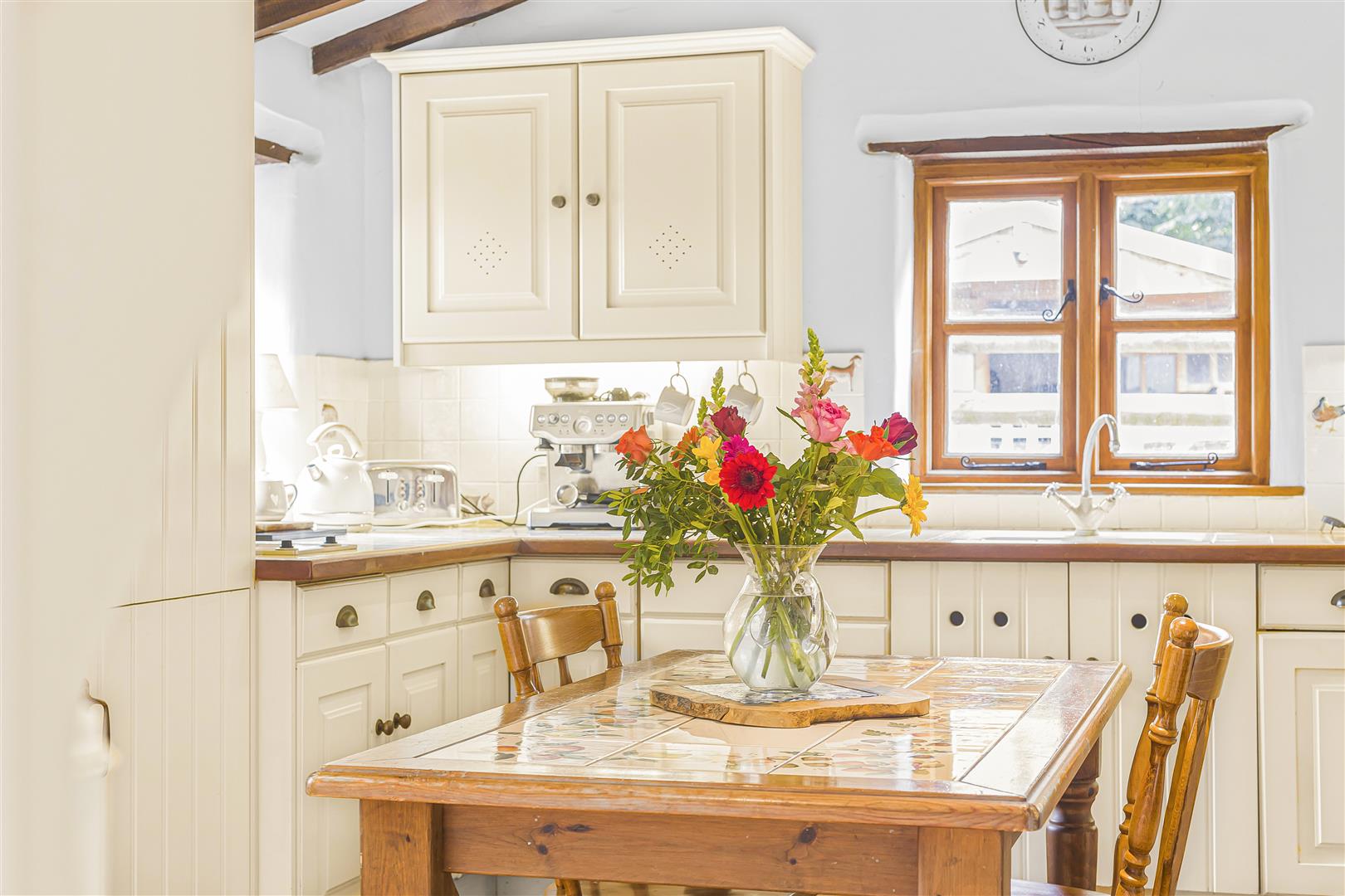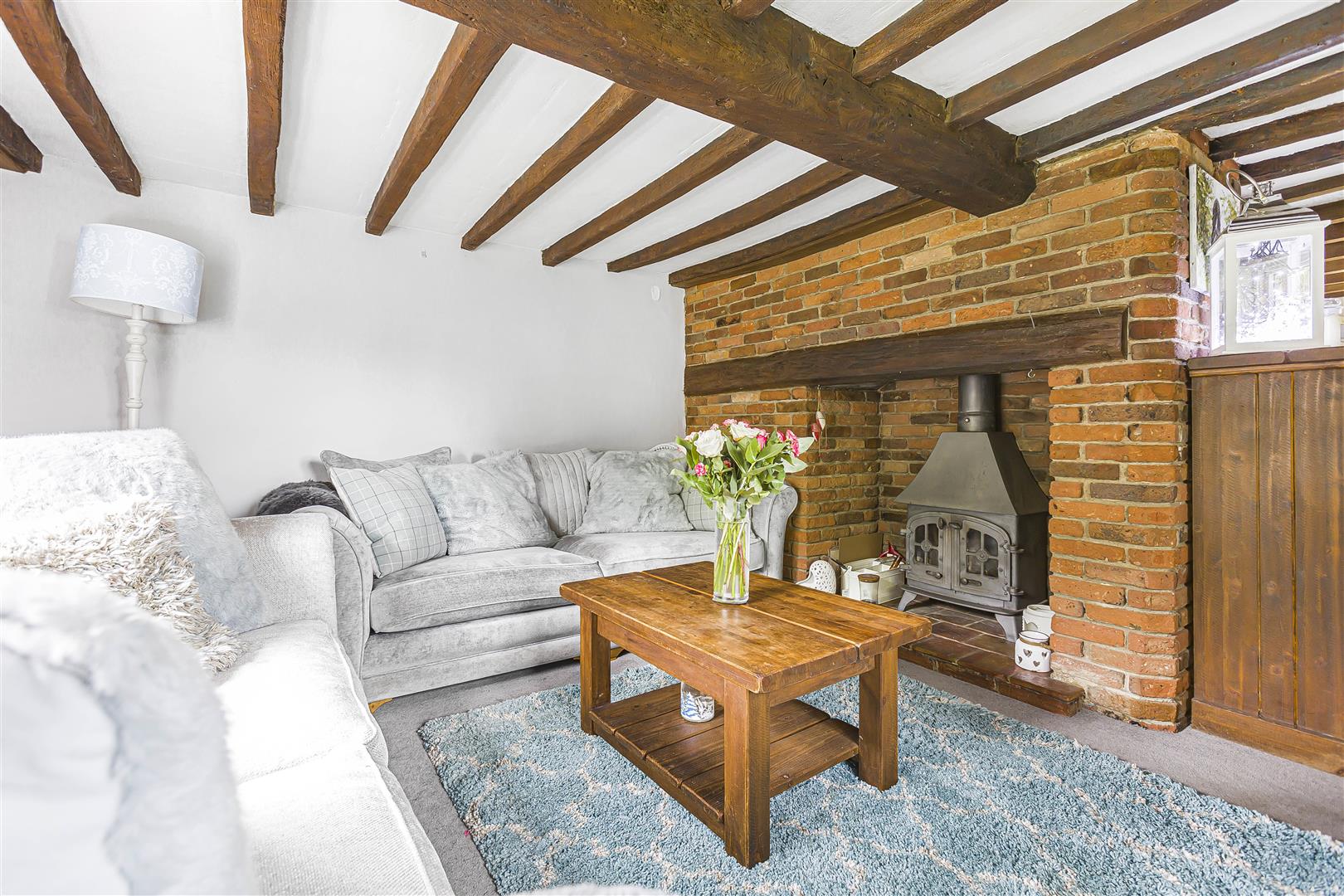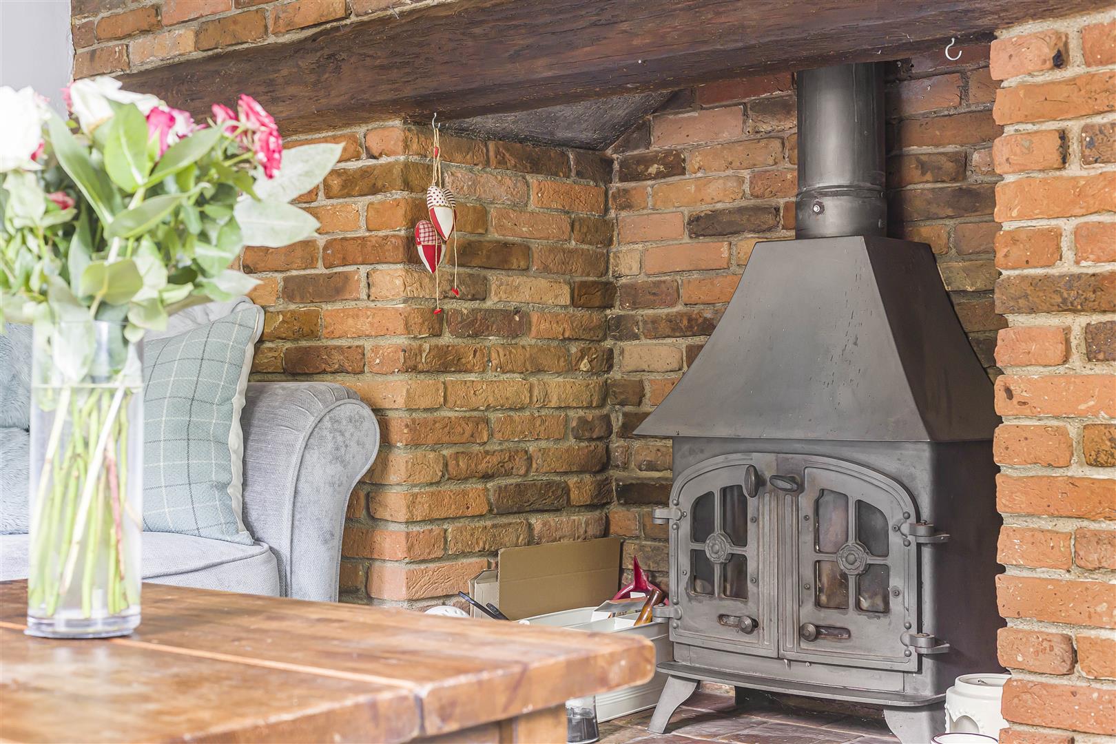 The sitting room boasts exposed timbers and an attractive brick-built fireplace with a wood-burning stove, making for the perfect room to enjoy long cosy evenings.