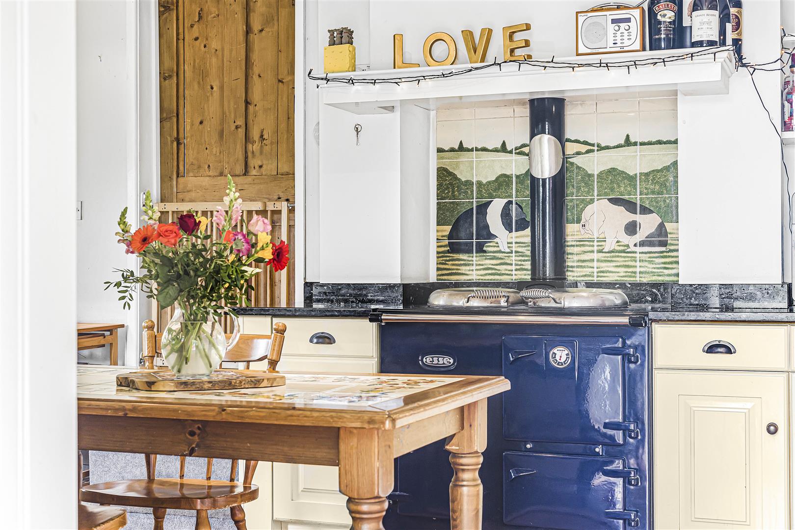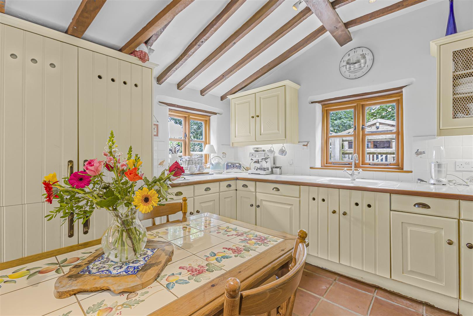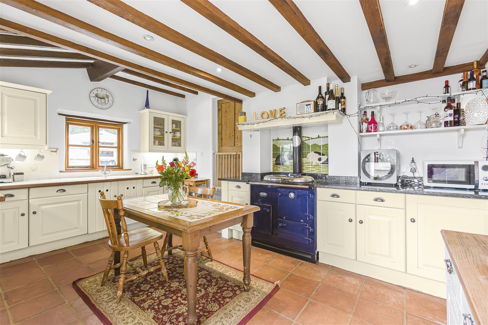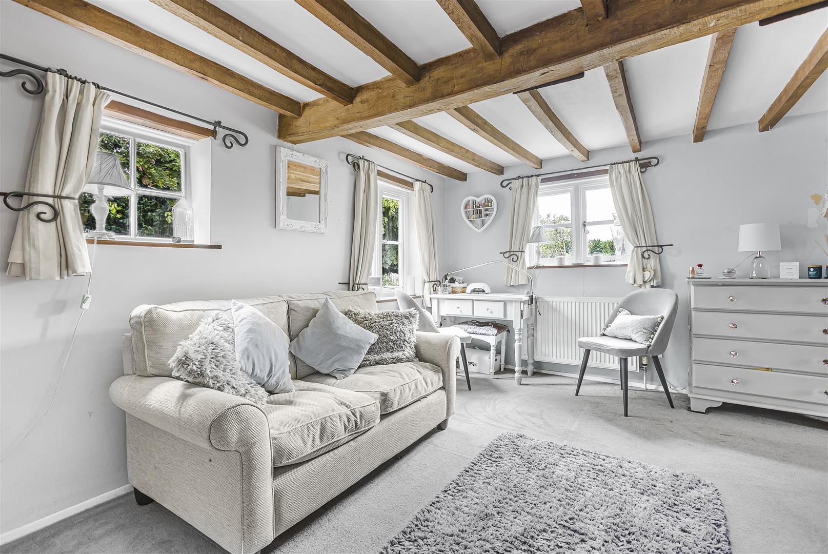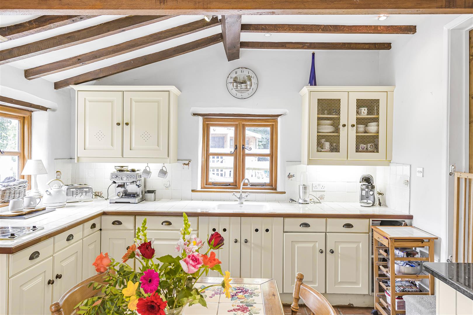 The sitting room boasts exposed timbers and an attractive brick-built fireplace with a wood-burning stove, making for the perfect room to enjoy long cosy evenings.