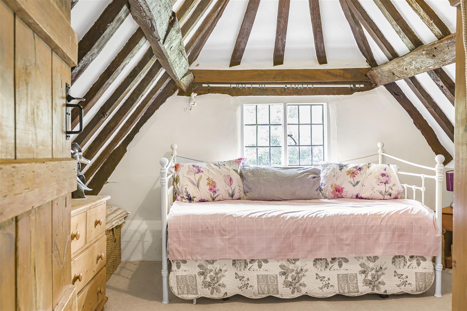 Whilst the bedrooms have some height restriction, they are charming, with original beams, and views over the garden.