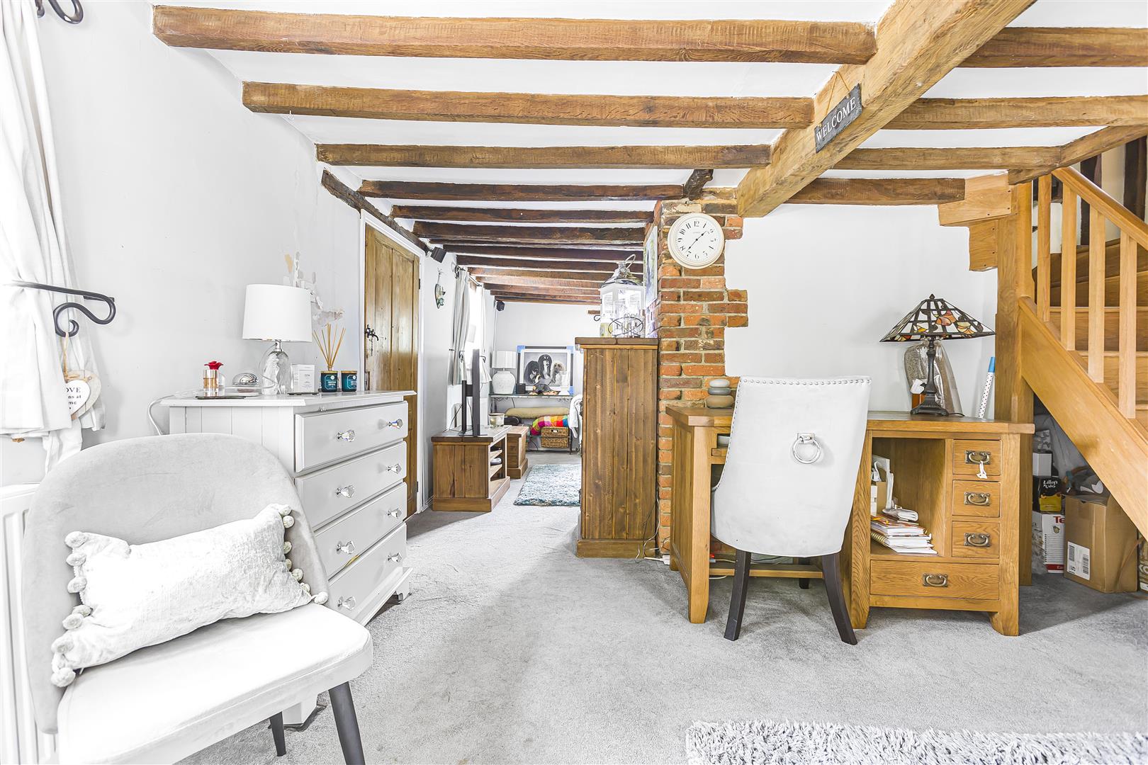 The reception room to the right-hand side also boasts exposed beams and an attractive oak staircase leading to the first floor.