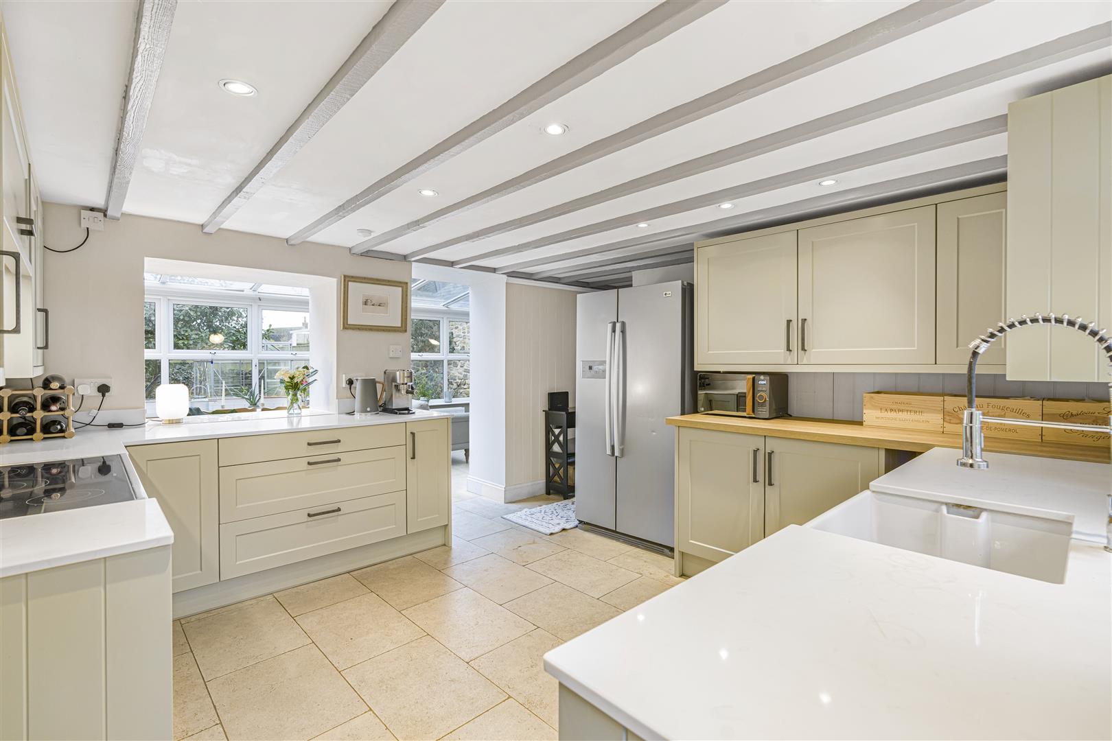 Enter the property into the kitchen, which has been refitted with a number of units and space for a large range cooker, and appliances. With views over the pretty front garden, it has a lovely country cottage feel.