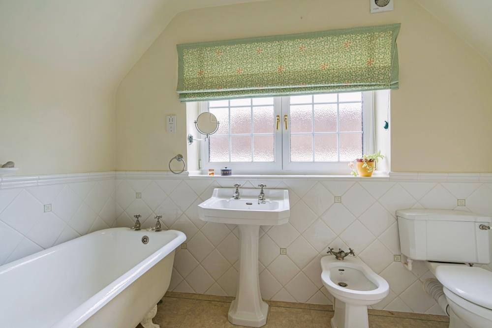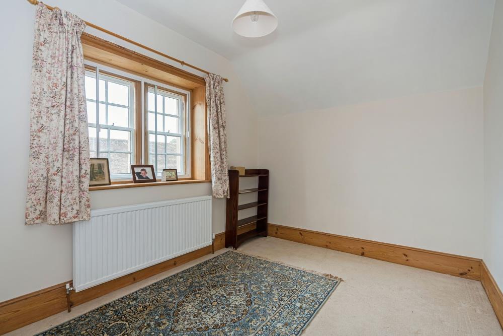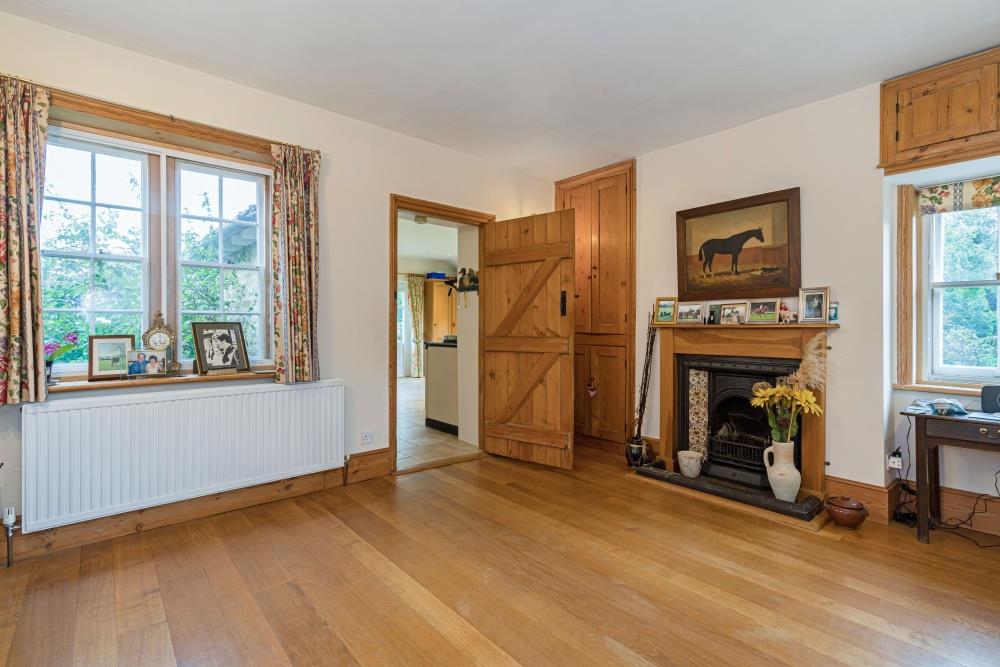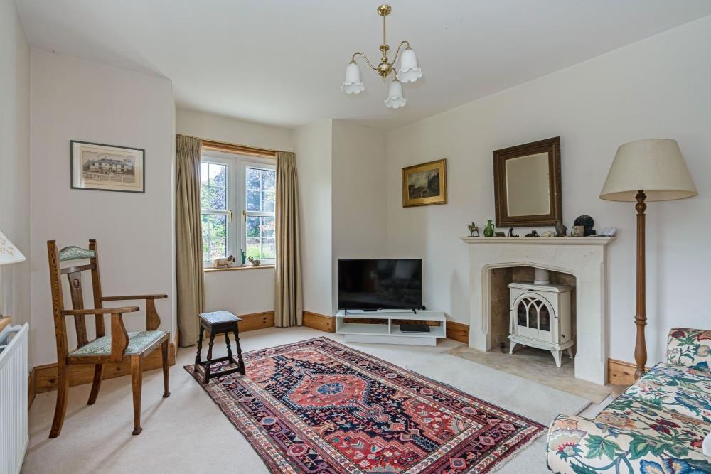 With a bay window overlooking the front lawn, and a wood-burning stove it is both a light and cosy room to enjoy long winter evenings.