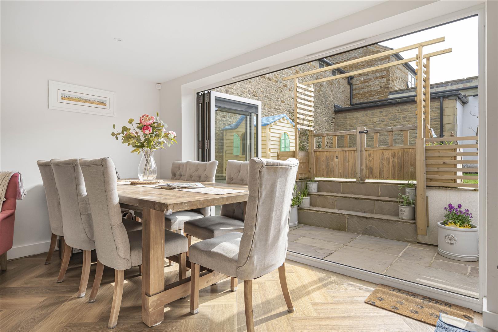The cosy, separate sitting room, with a feature fireplace and wood-burning stove, provides a welcome retreat, ideal for relaxing after a long day.