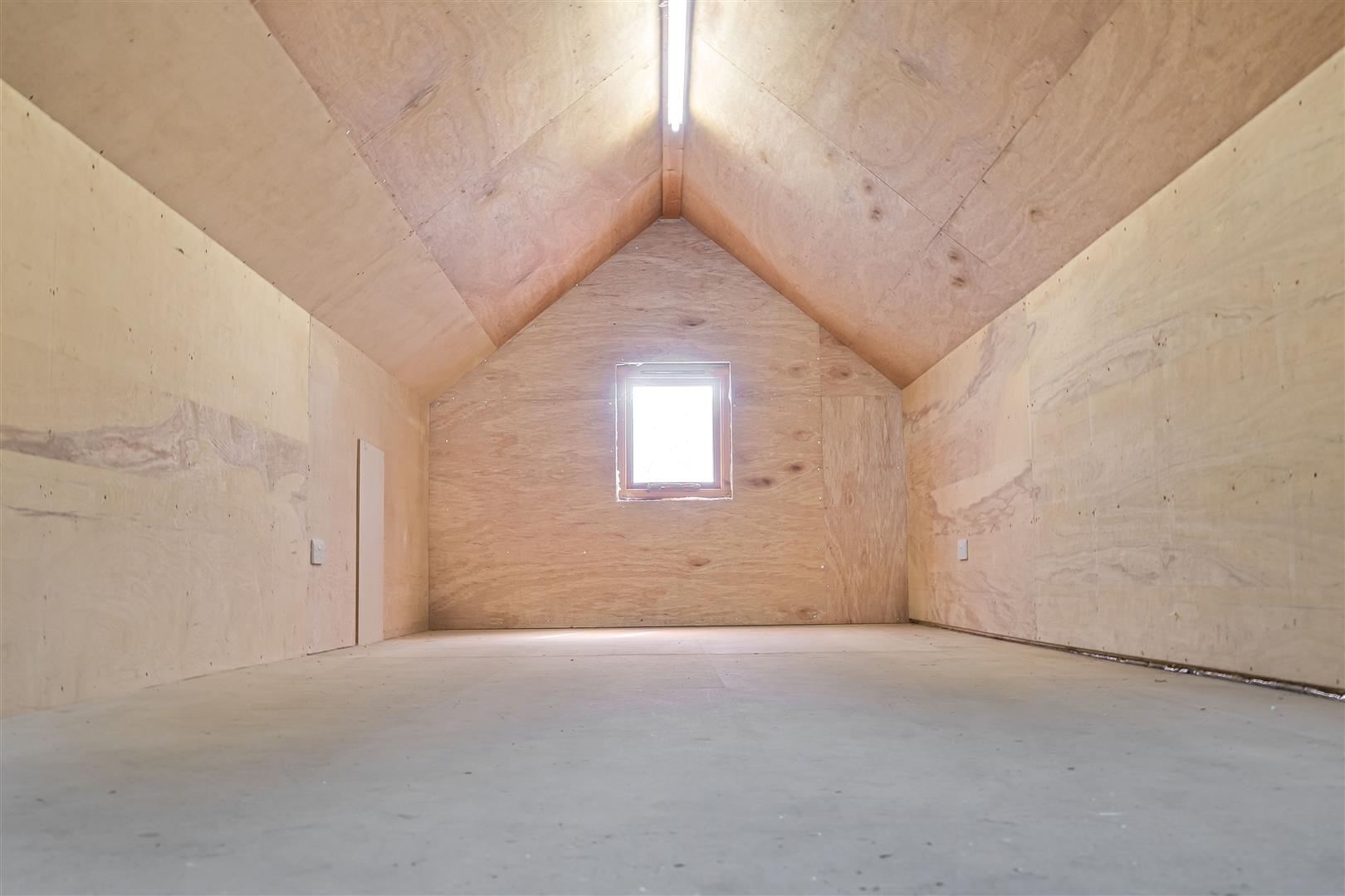 A path leads to the double garage and additional parking. Constructed of concrete blocks and cedar cladding with a slate roof it not only offers excellent storage above, but the perfect working space for the keen car enthusiast.