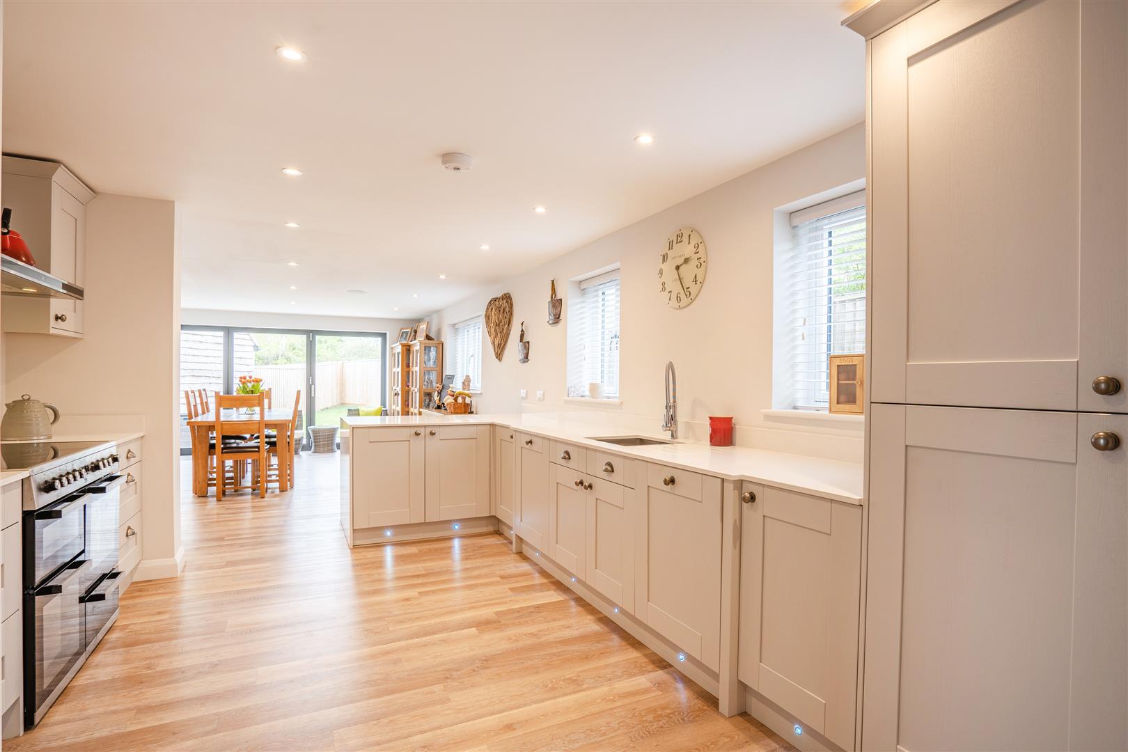 A light and welcoming entrance hallway leads to the kitchen/dining/sitting room.