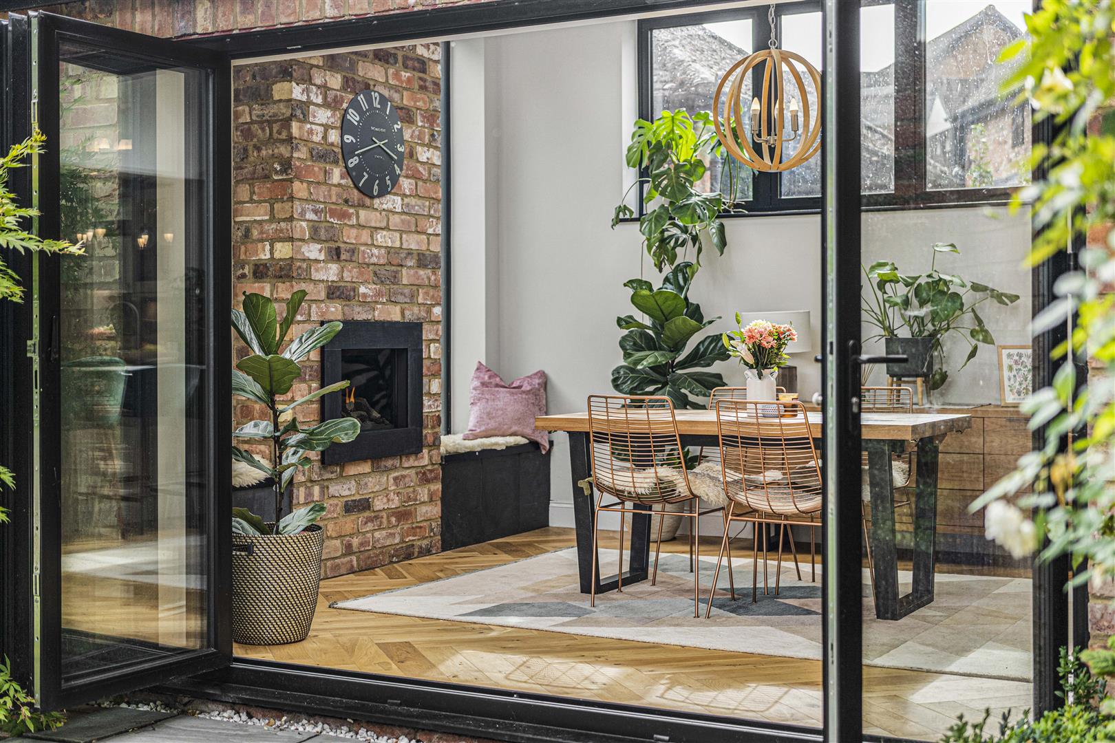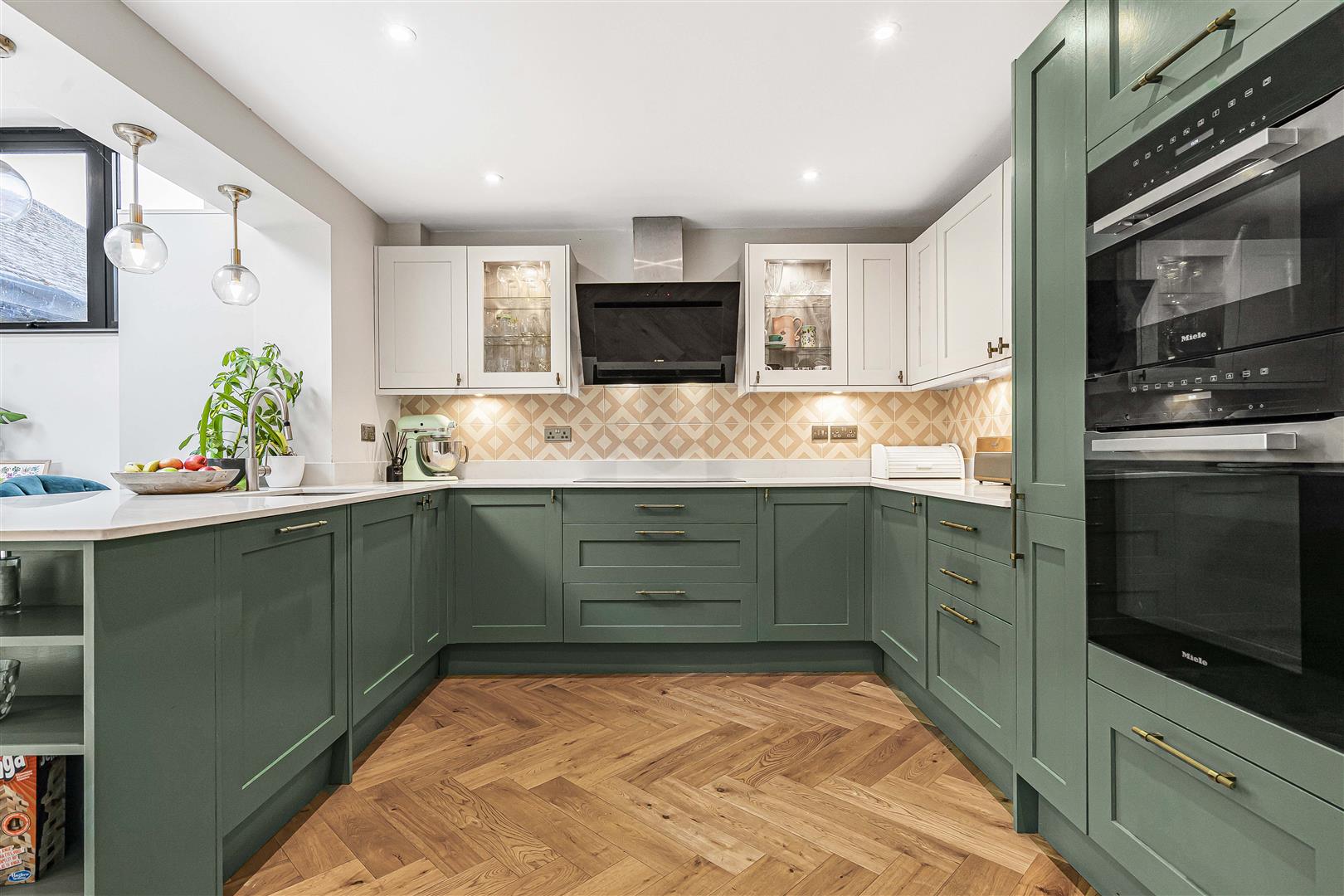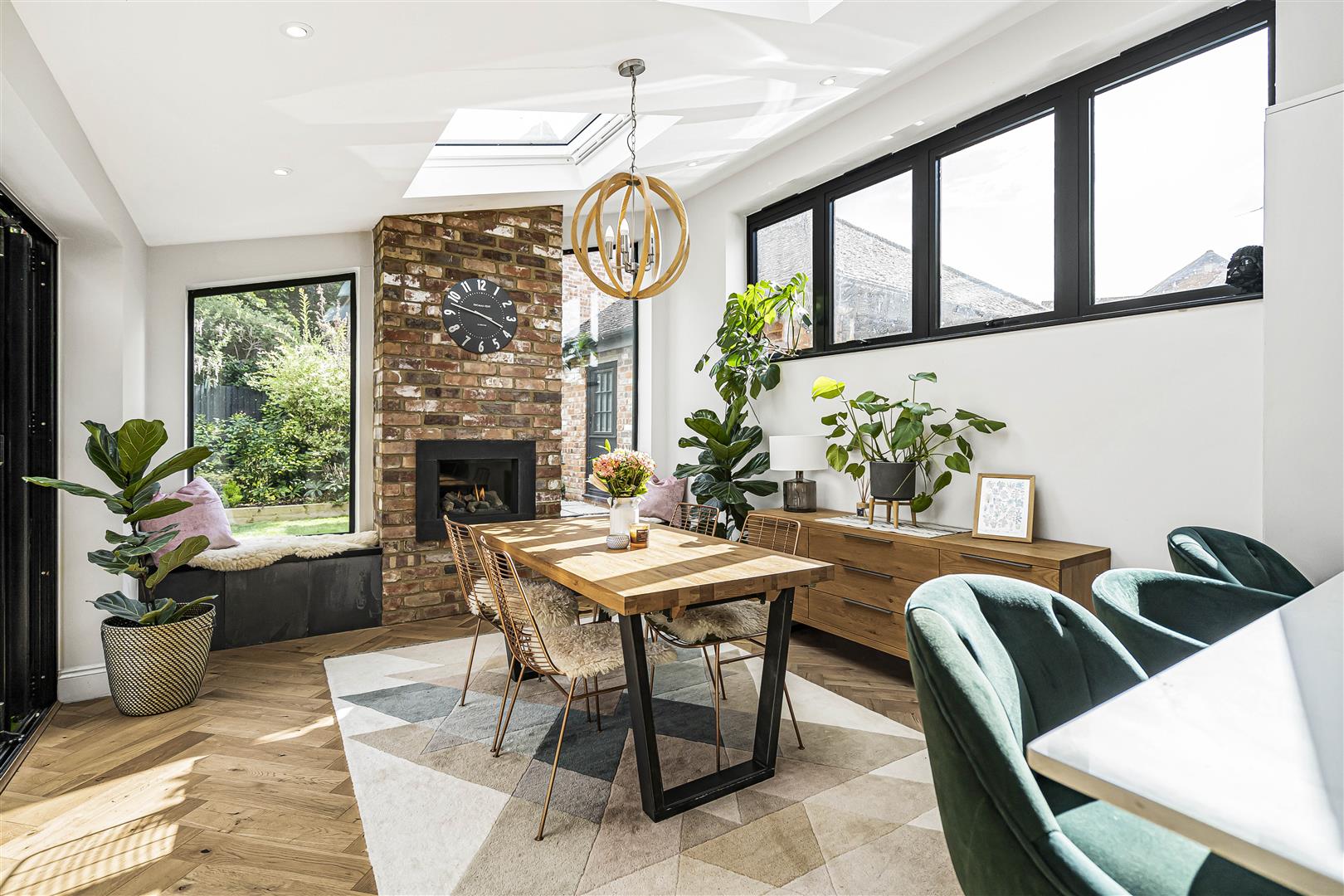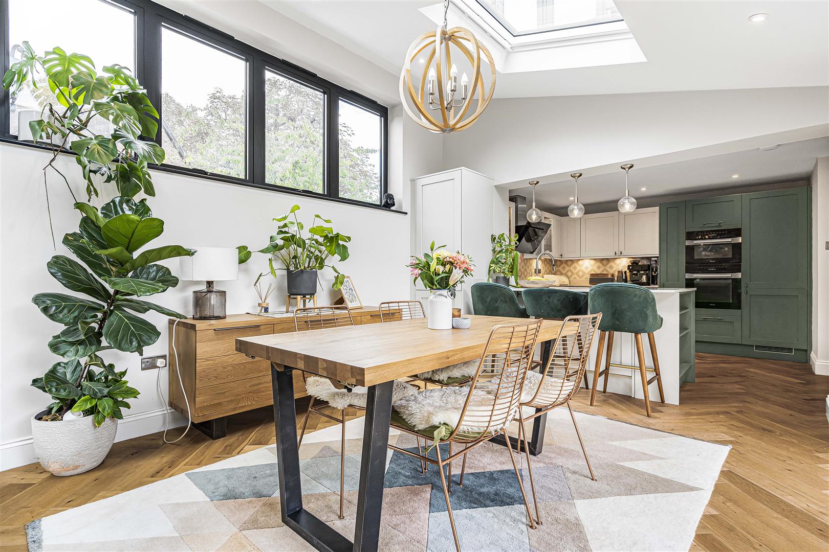 This expansive open-plan space is perfect for modern family living and entertaining. The kitchen is fitted with contemporary units and integrated Miele and Bosch appliances, while the dining area with bi-folding doors offers direct access to the rear garden - ideal for summer gatherings and indoor-outdoor living.