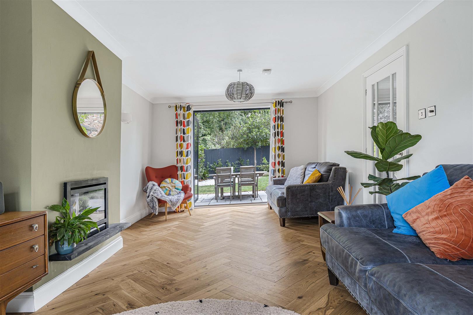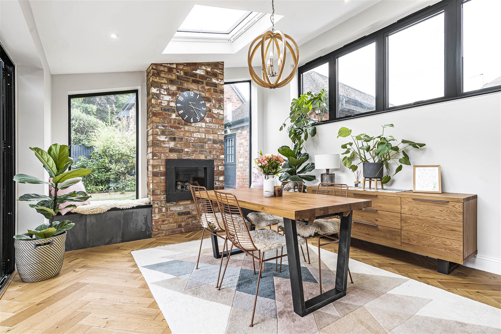 To the rear, the heart of the home is the impressive kitchen/dining room (26'3" x 14'7"), which benefits from an impressive extension with a vaulted ceiling and a feature fireplace.