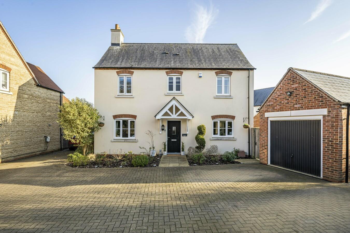 Situated in a quiet corner of Huntingdon Road, Bicester, this stunning 4 bedroom detached house with three reception rooms and downstairs study, offers a perfect blend of modern living and spacious comfort. Built in 2015, the property spans an impressive 1,693 square feet, including garage, providing ample room for families or those who enjoy entertaining.