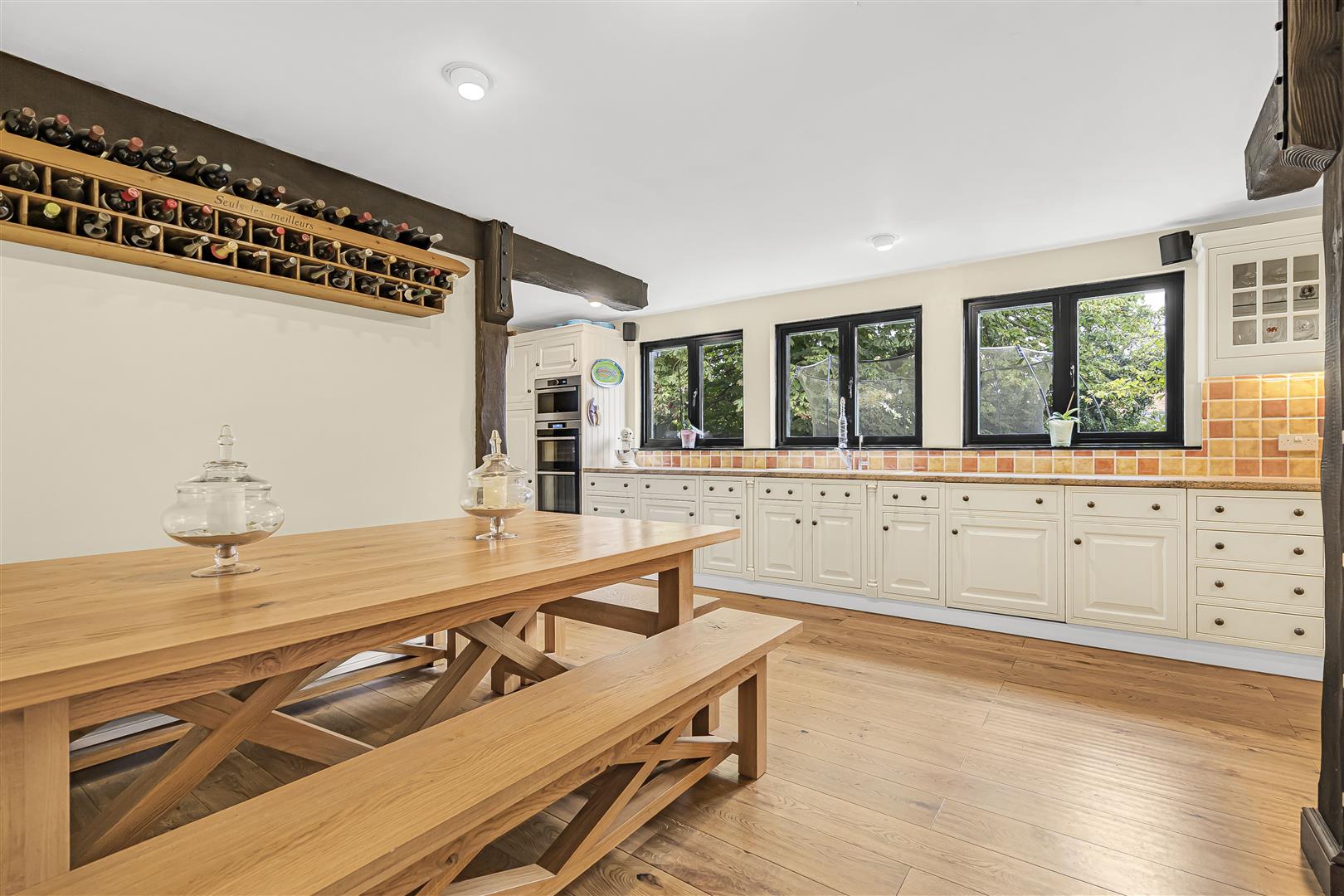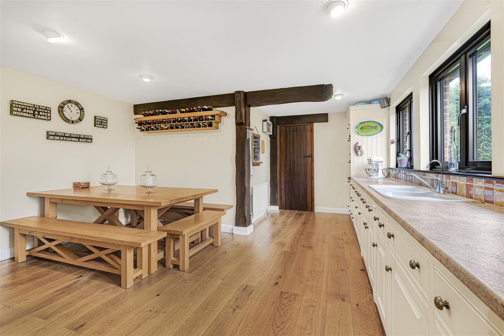 The kitchen/dining room is fitted with a generous number of floor and eye-level units and integrated appliances, with plenty of space for a table and chairs it ideal for more casual dining.