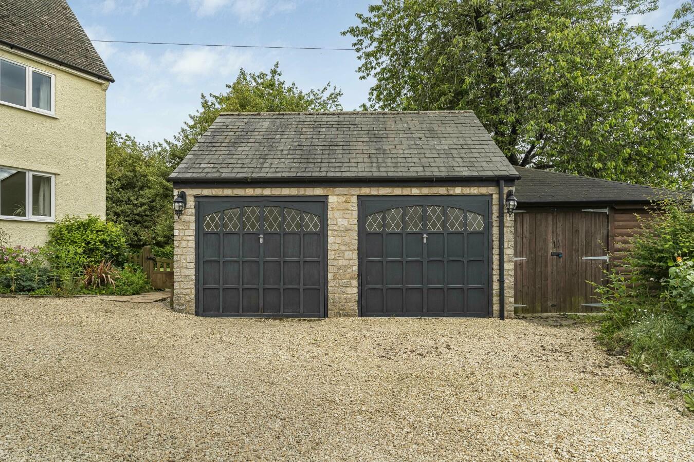 Adjoining the double garage at the front of the property is a timber-framed garage, and to the left of the property there is a carport.