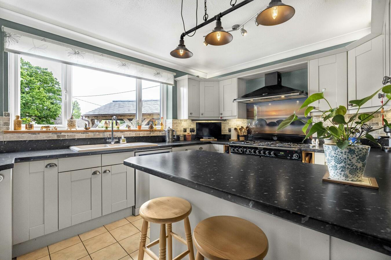 A fantastic opportunity to purchase an extended four-bedroom detached property offering flexible accommodation, on a particularly generous corner plot, with garaging and a workshop enjoying views over rolling countryside.