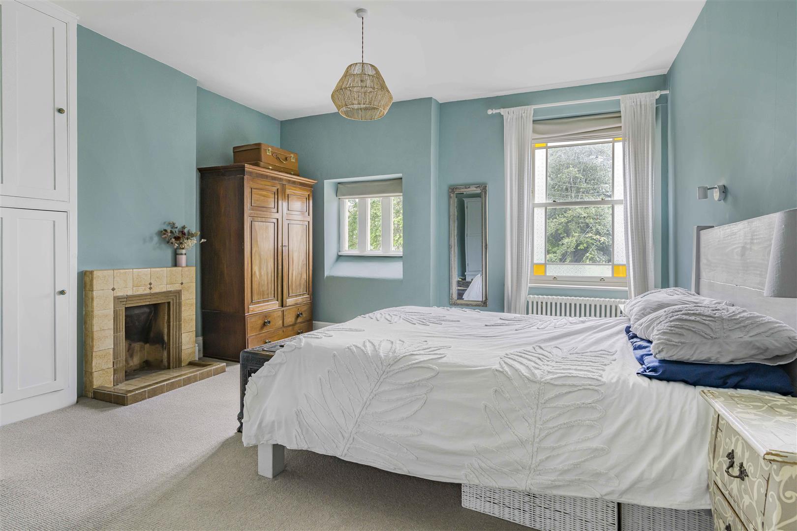 The master bedroom is spacious and enjoys views to the front over the 12th Century St Edburgs Church.