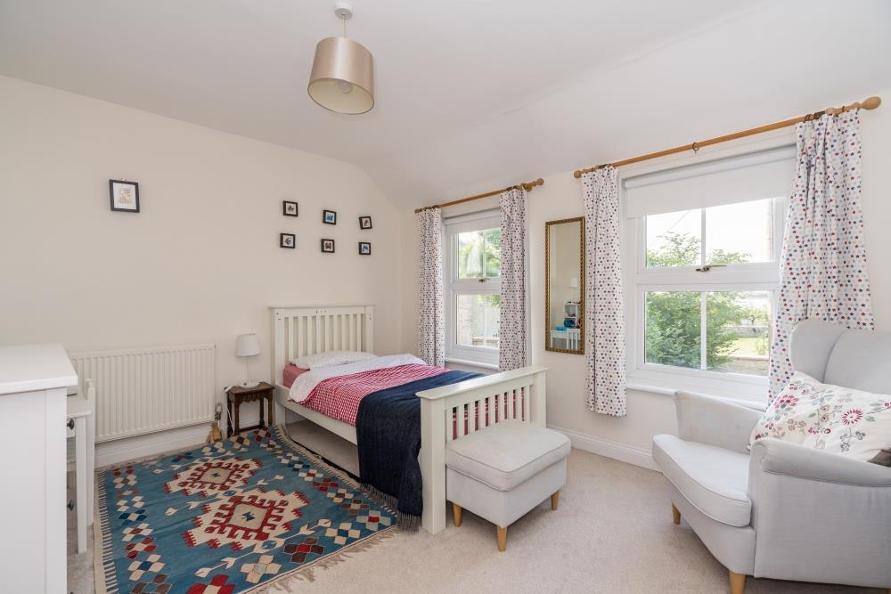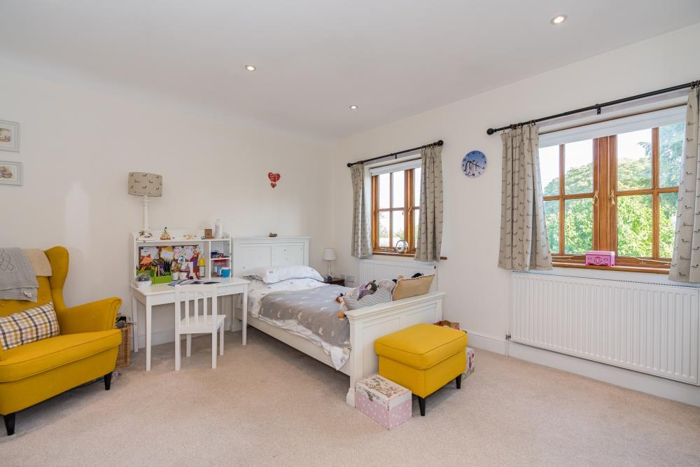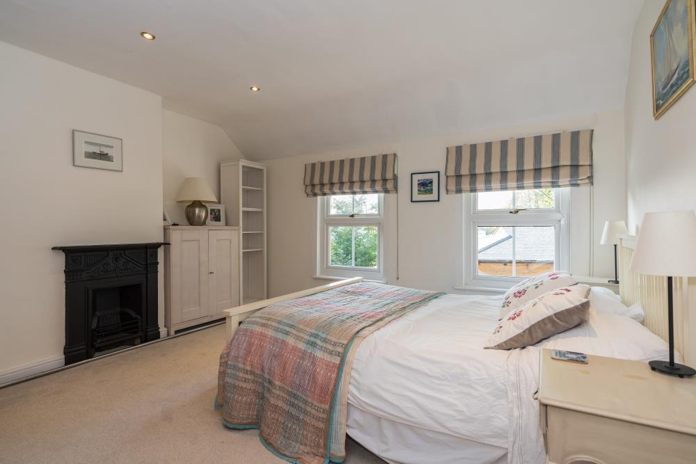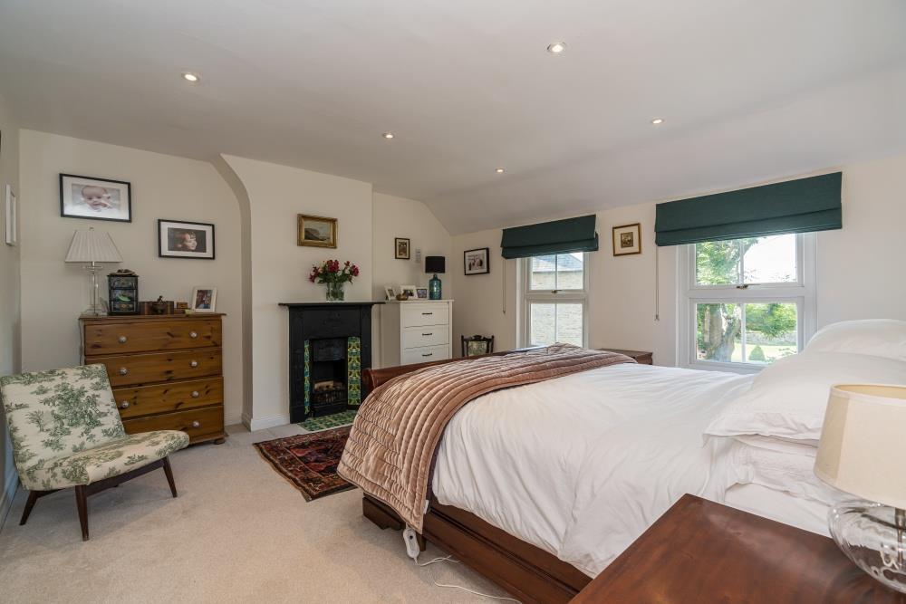 The master suite has double-aspect windows, a dressing room, and a newly refurbished en-suite shower room.