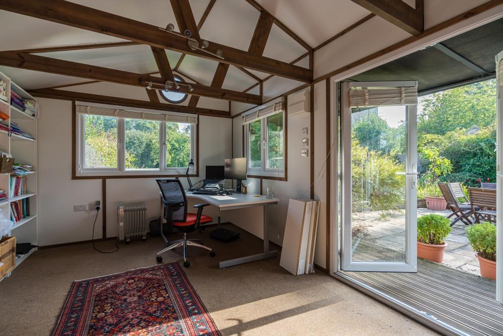 The large secluded rear garden is mostly laid to lawn, with fruit trees and mature shrubs. There is plenty of space for the keen gardener to grow vegetables, have a greenhouse along with room for children to kick a ball.
