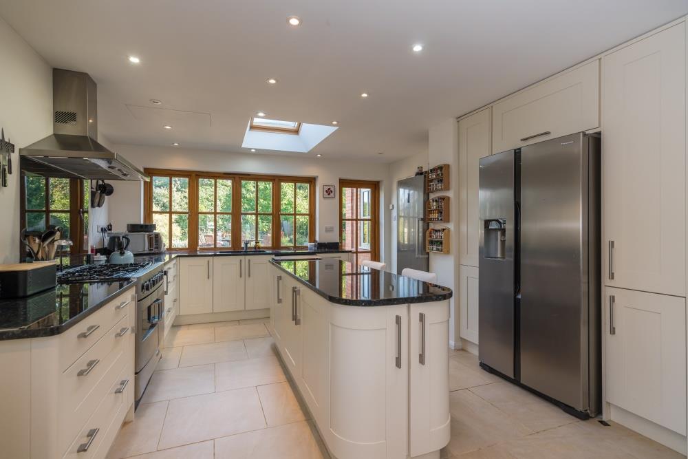 Flooded with light from the dual aspect windows and skylight and refitted with a generous number of floor and eye level units, integrated appliances, a range cooker, and a central island all complemented by black granite work surfaces it is definitely the "hub" of this delightful family home.