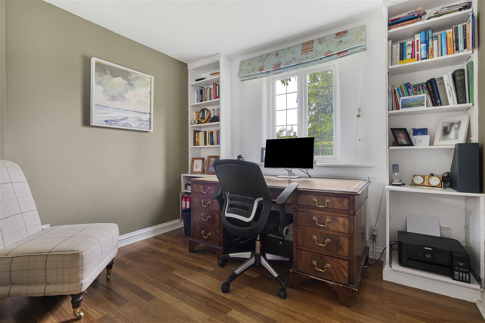 The study has wooden flooring and a partially glazed panelled wall to the hallway, along with views over the rear garden, making for a super room for those that work from home.