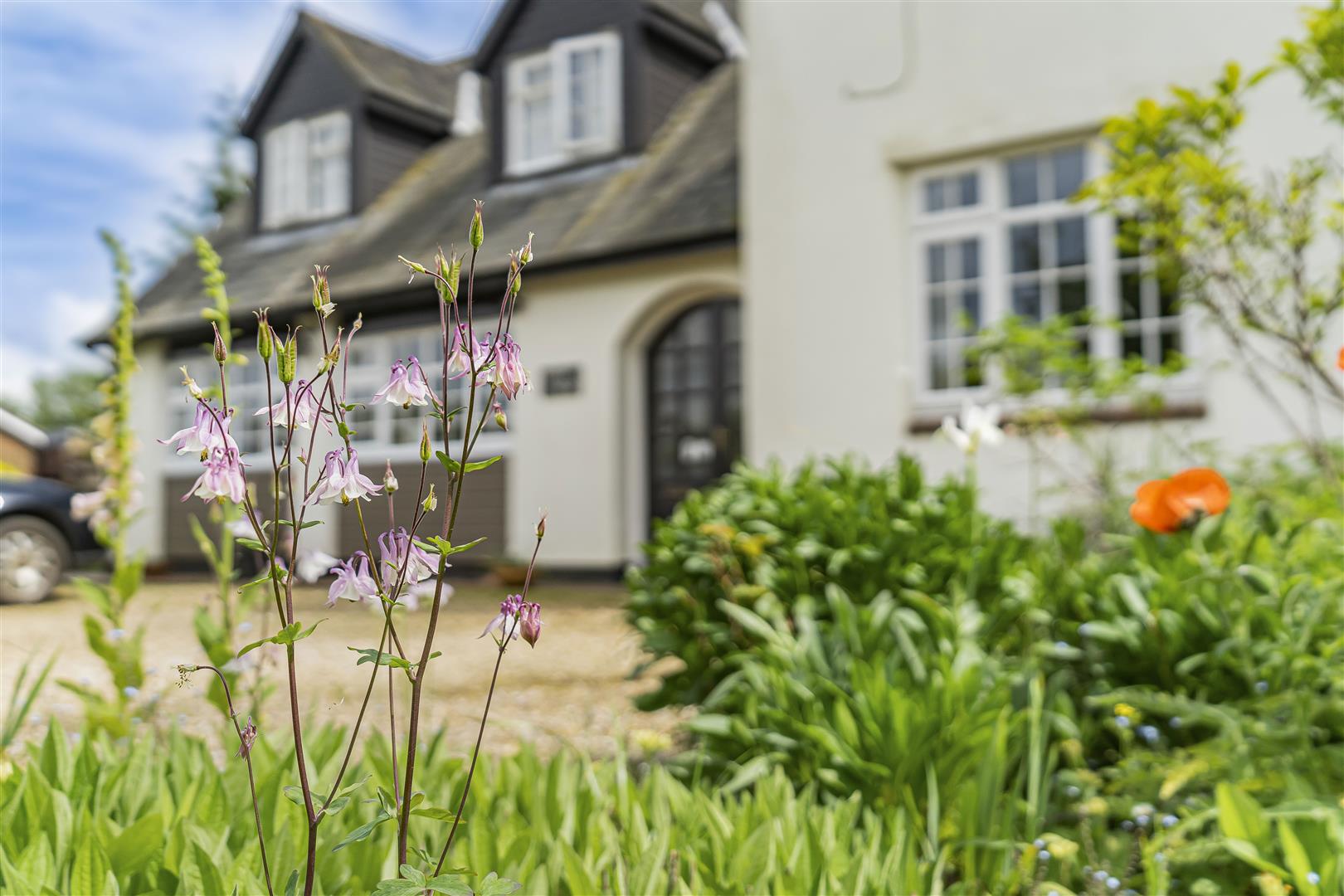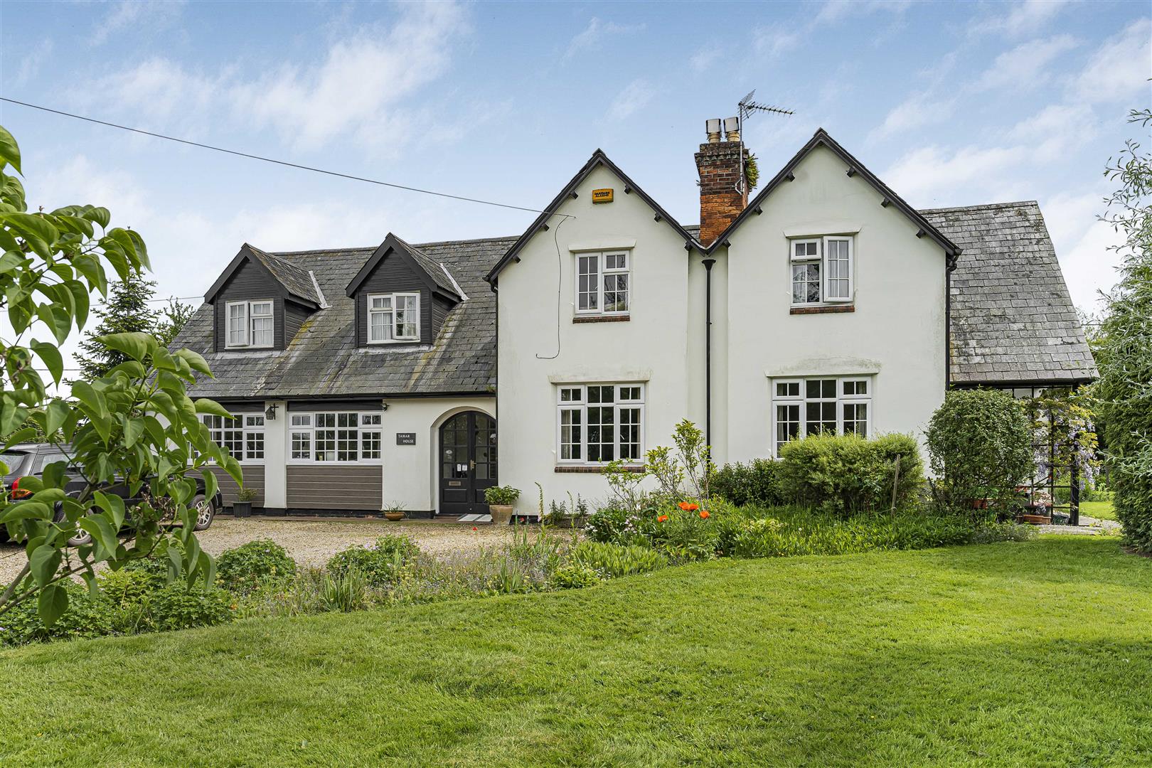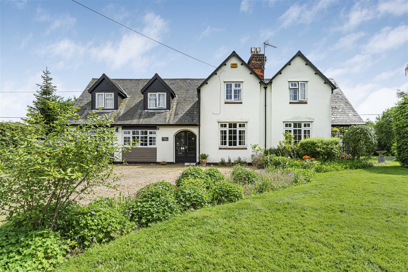 Approached over a sweeping gravel driveway, which has parking for several vehicles this five-bedroom family home sits well within its generous plot.