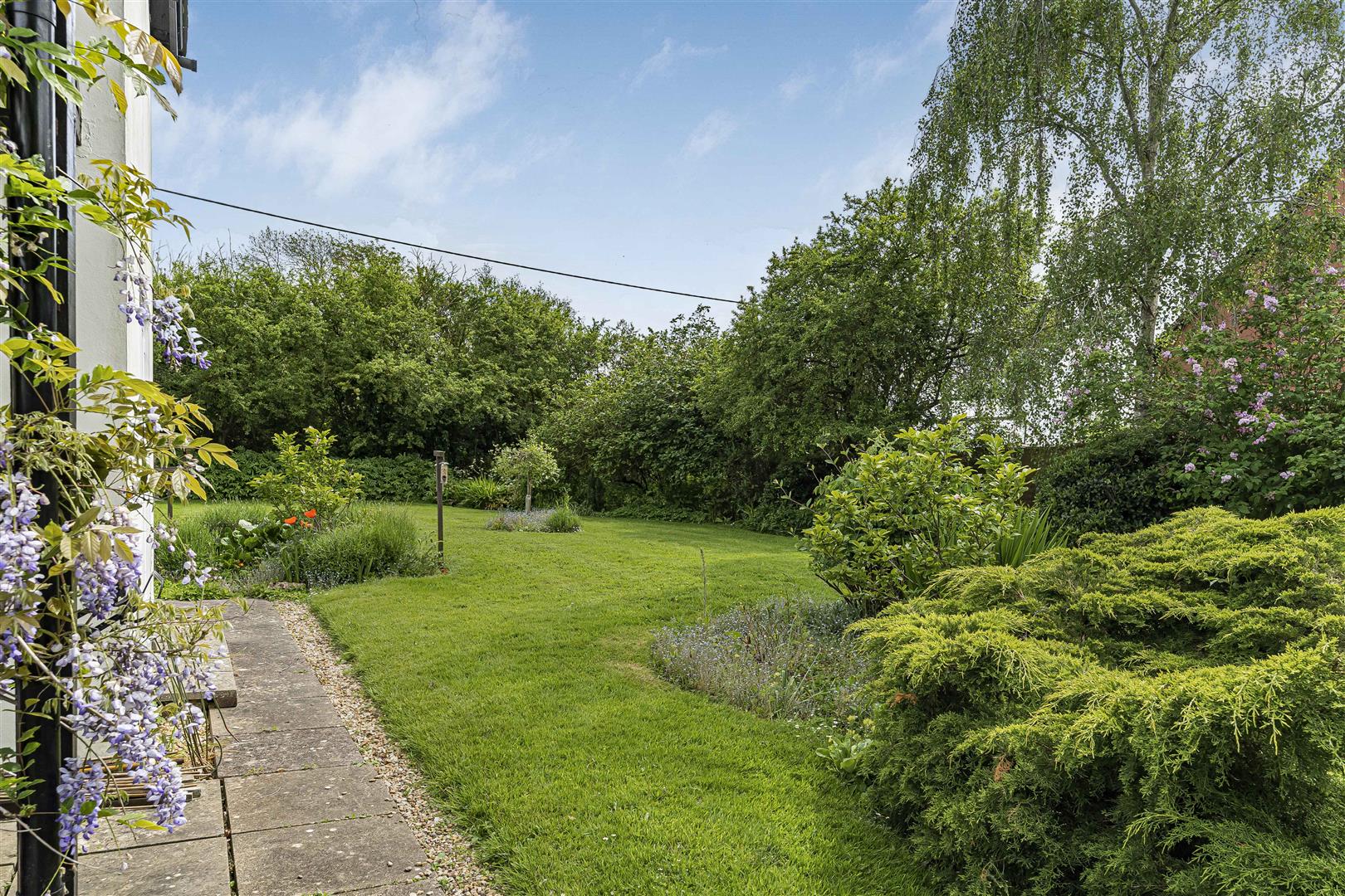 Mainly laid to lawn with mature hedges, trees, and shrubs it is a lovely tranquil setting to enjoy long summer evenings and weekends alike.