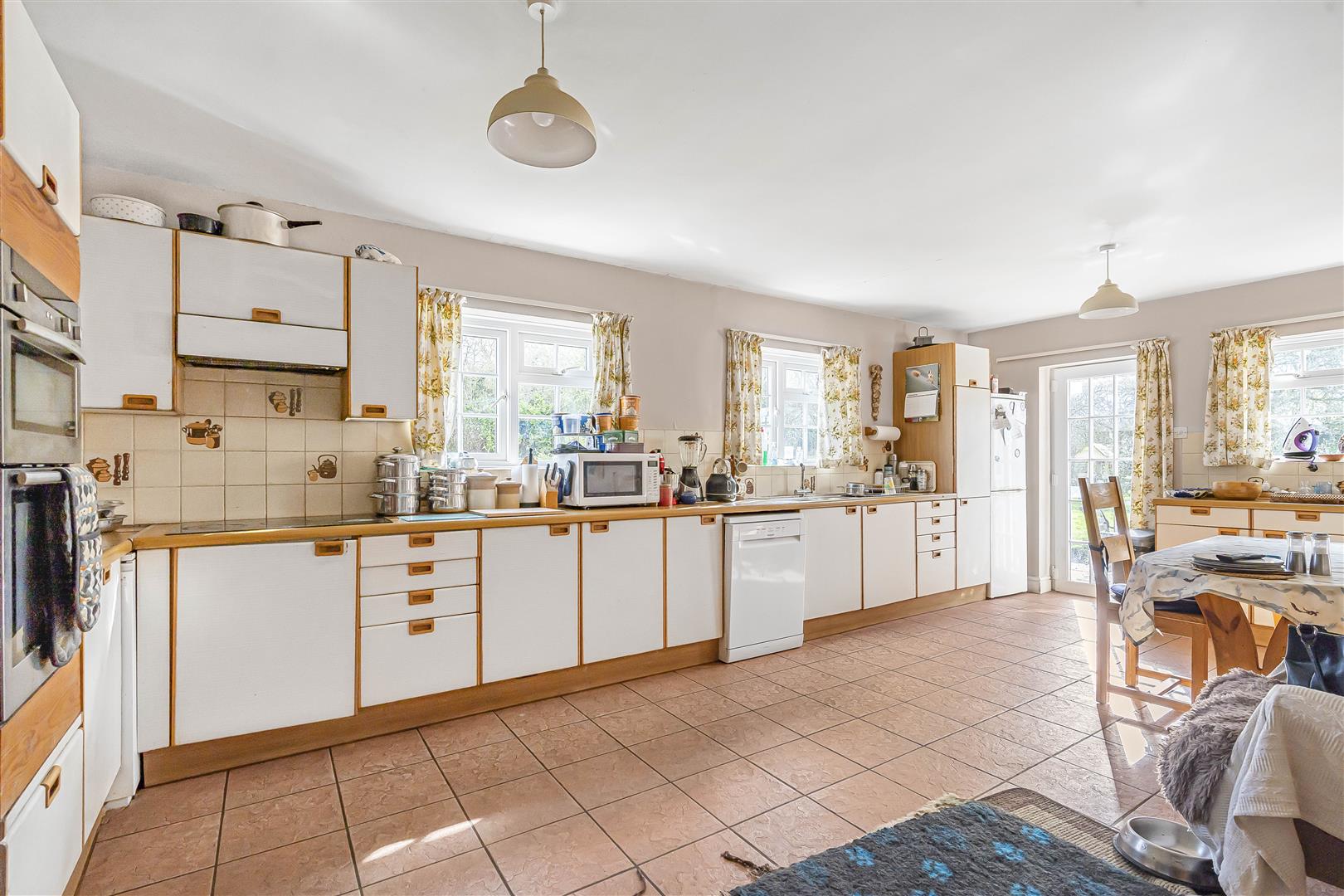 The current sellers reconfigured the property in 2017 by converting the former double garage to provide annex accommodation, which has a sitting room, bedroom, kitchen, and a wet room, along with a door to the side of the property.