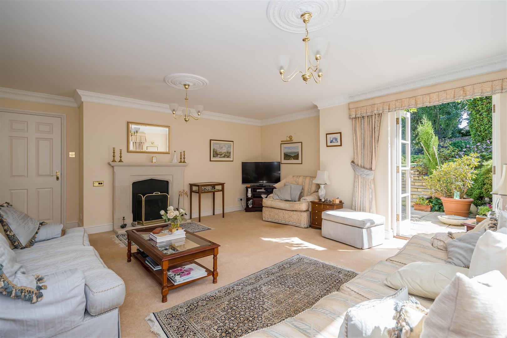 The sitting room has a lovely feel, with a feature fireplace and double doors leading out to the garden.