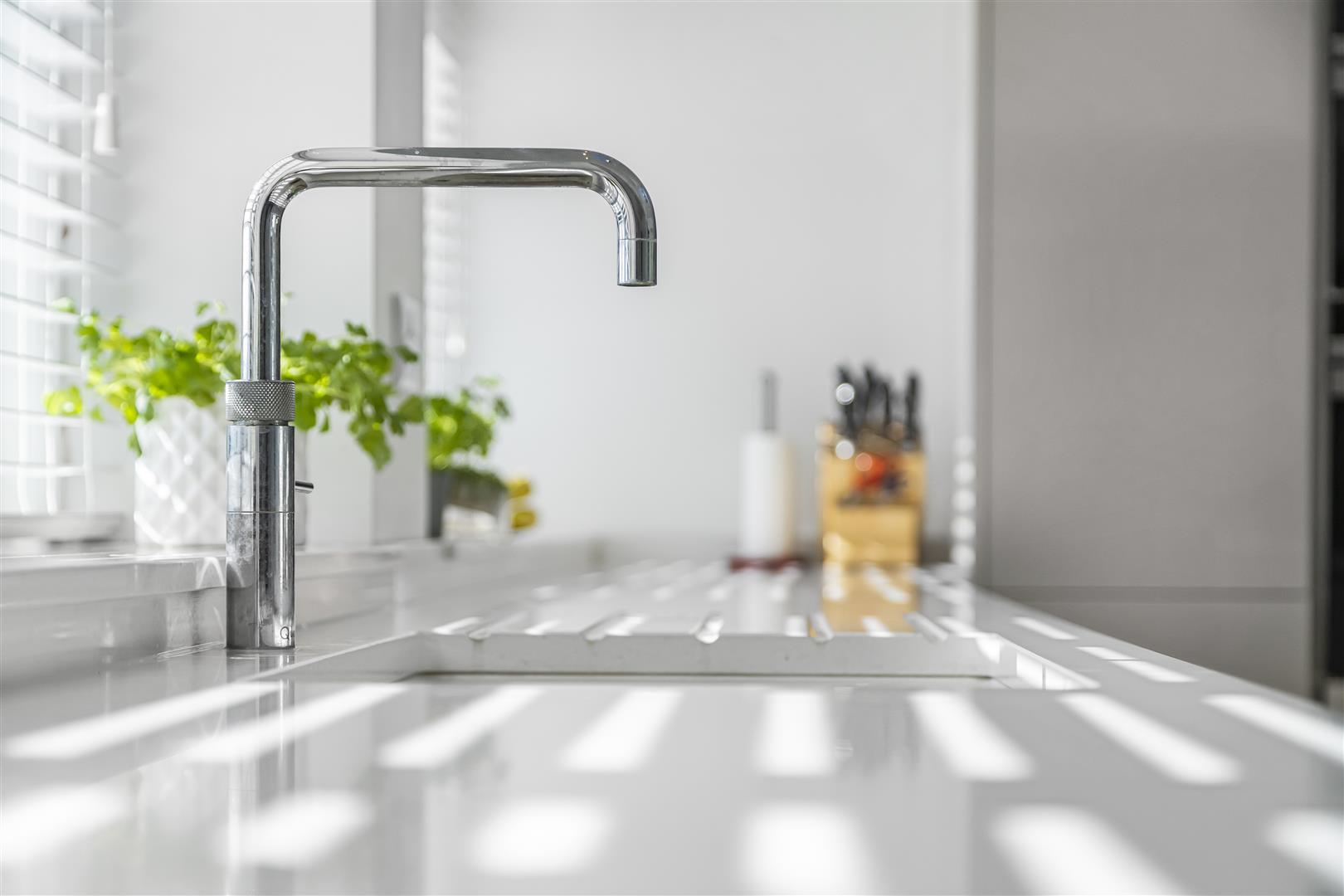 A substantial island provides breakfast seating, perfect for a coffee or a glass of wine whilst chatting with friends.