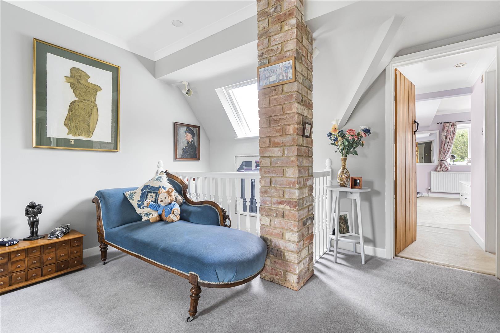 The sitting room is double aspect with a fireplace and the added benefit of a garden room to take in the sunny aspect of the rear garden.