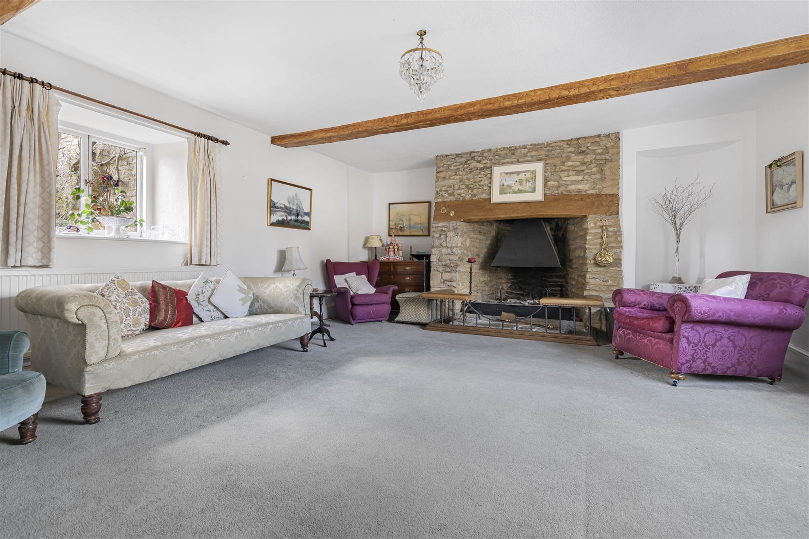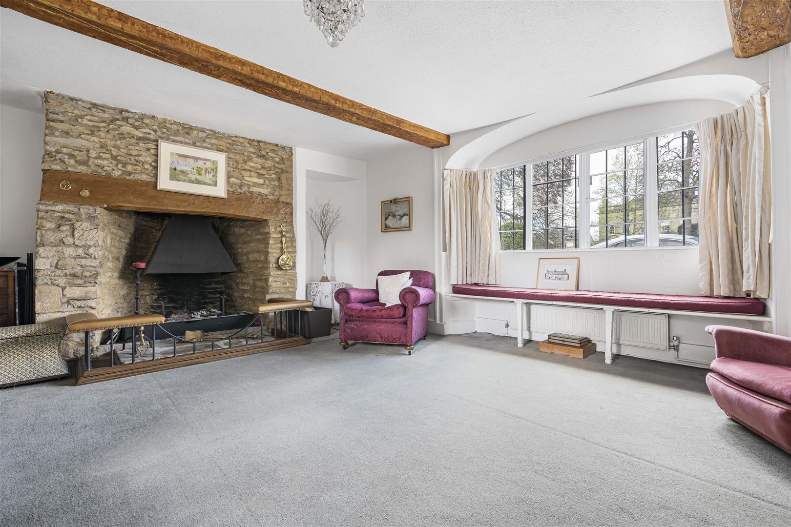 The drawing room features exposed beams, a large stone-built Inglenook fireplace, a window overlooking the courtyard garden, and a fabulous arched window with a window seat, making for the perfect room for large family gatherings and entertaining.