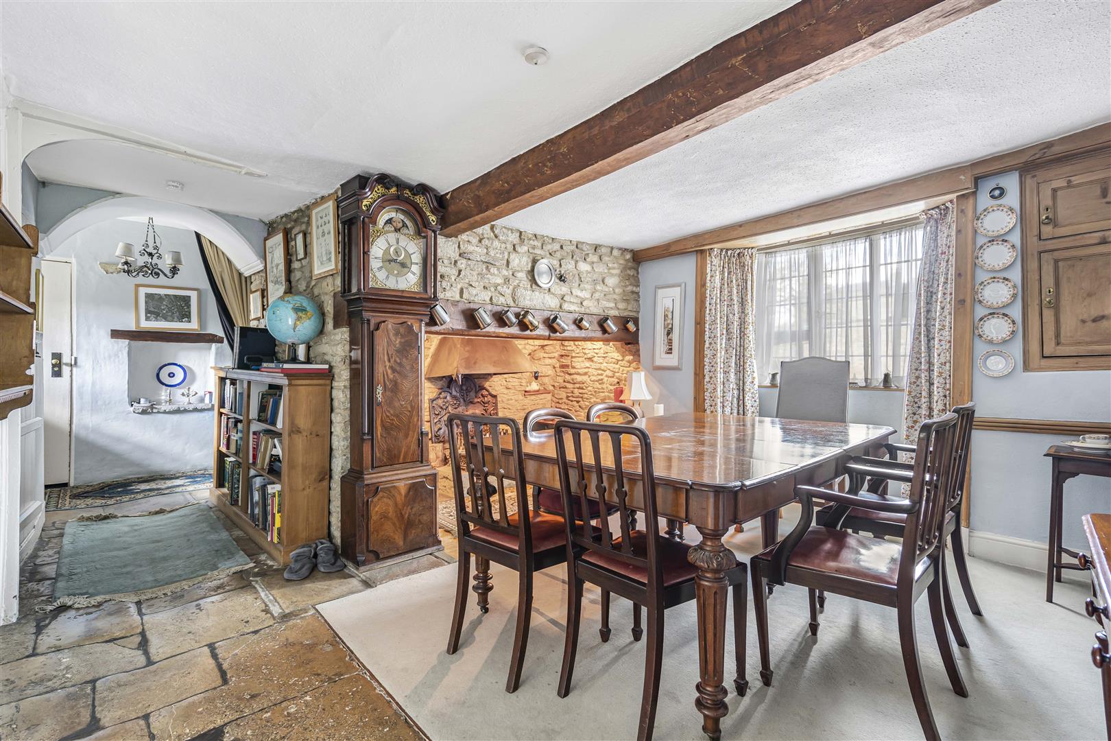 The dining room, which has direct access to the kitchen also boasts a fabulous Inglenook fireplace and flagstone flooring, providing a lovely backdrop for formal entertaining.