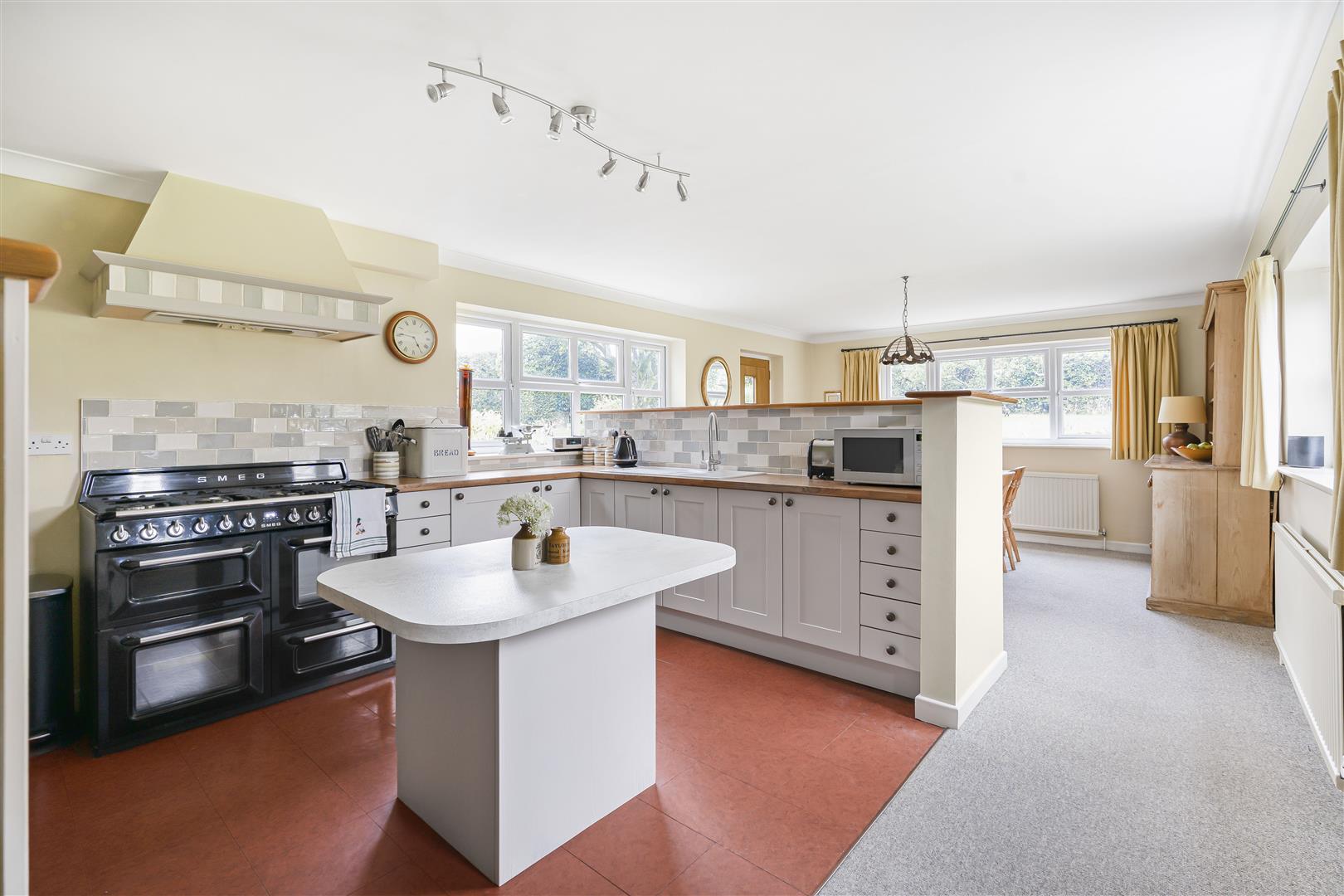 The kitchen/dining room, extended in the 1980's, and recently refurbished provides a light and spacious room that enjoys views on three sides over the garden, patio, and far-reaching views of the farmland beyond.