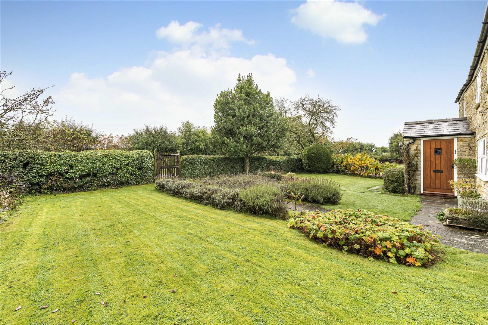 The extensive front garden of this delightful character cottage offers the perfect spot for a morning coffee, with colourful borders, mature trees, wilding lawn, and a lavender path leading to the front door.