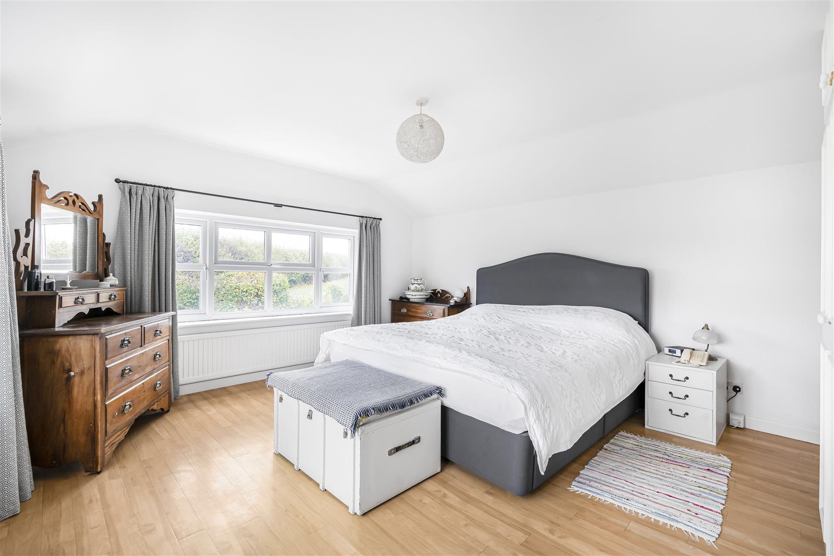 Stairs from the sitting room lead to the first floor, which has four double bedrooms, a single bedroom, and a family bathroom. The double-aspect master bedroom was added to the rear of the property, with a large en-suite bathroom and fitted wardrobes it is a luxurious room for modern family living.