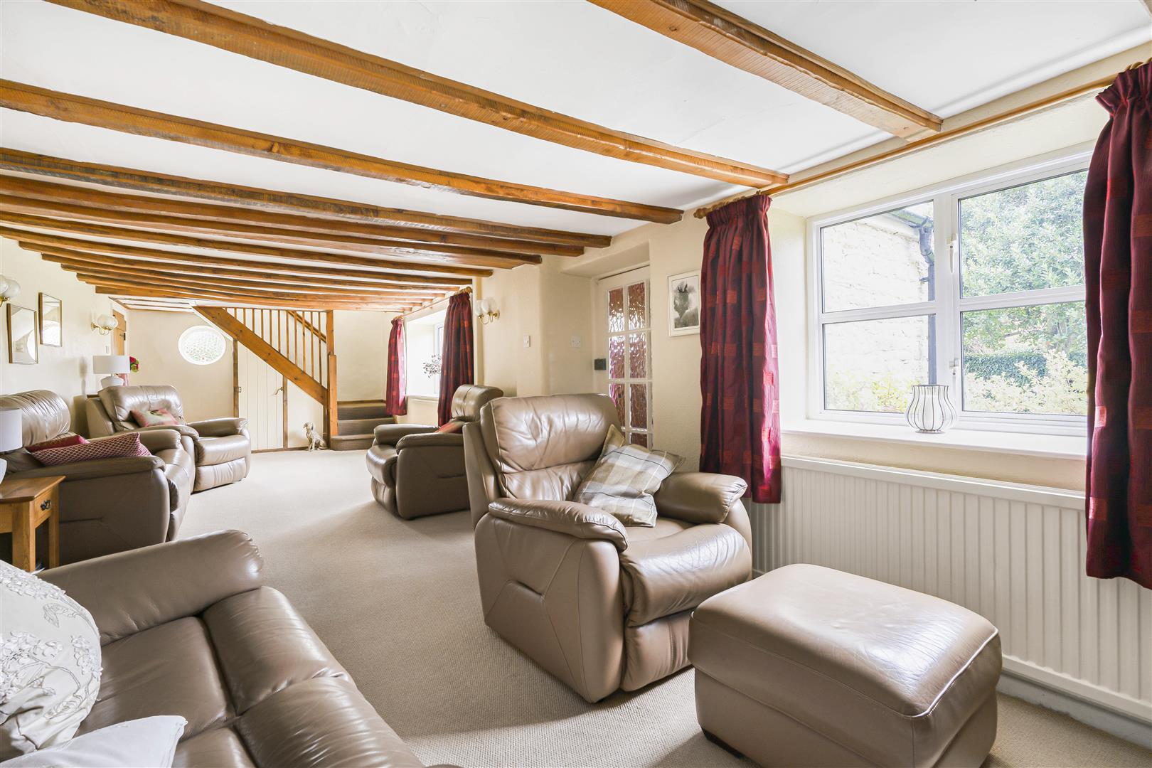 A stone-built porch leads to the large reception room at the front of the property, which boasts exposed beams, large windows overlooking the garden, and an attractive feature fireplace, making for the perfect room for both large gatherings and cosy winter evenings alike.