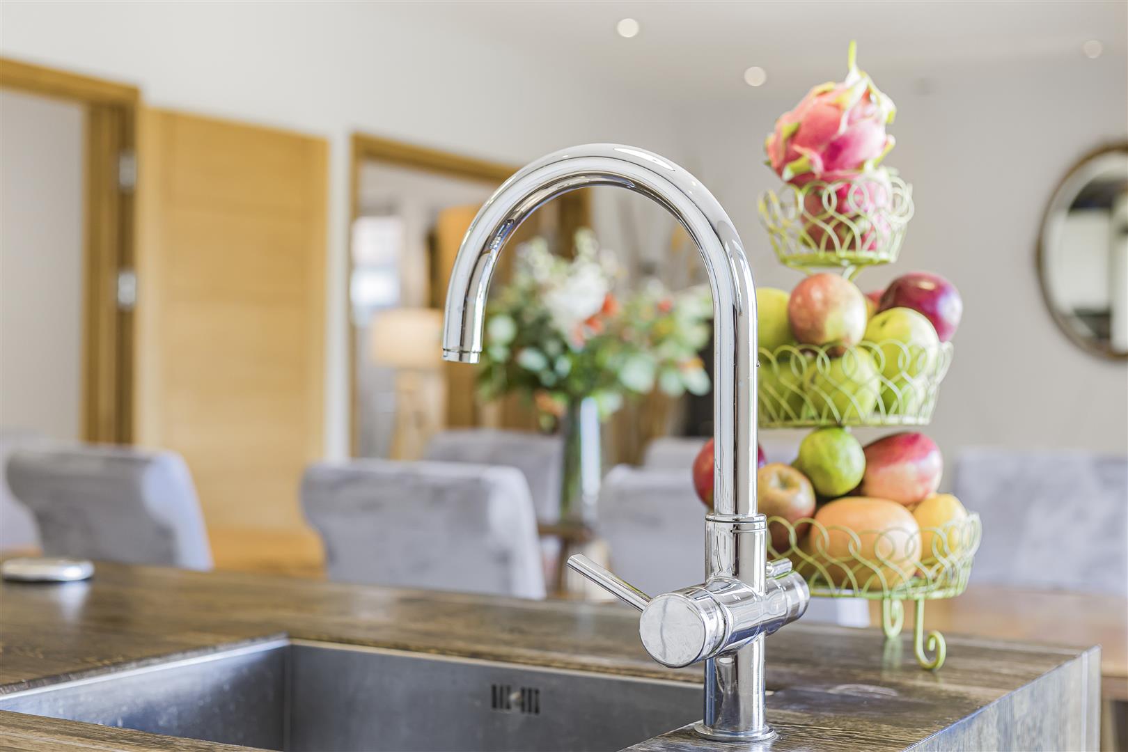 There are numerous touches to ease everyday life, including a Grohe "boiling tap" in the kitchen, NIKO Home Control that gives dimmable lighting and heating control including the garage via your phone or tablet, and touchless flush toilets throughout.