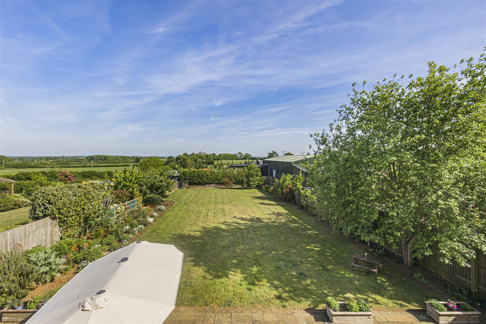 Outside, this property occupies a generous plot, the garden to the rear is laid to lawn with post and rail fencing and mature hedging, along with colourful shrubs and flower beds.