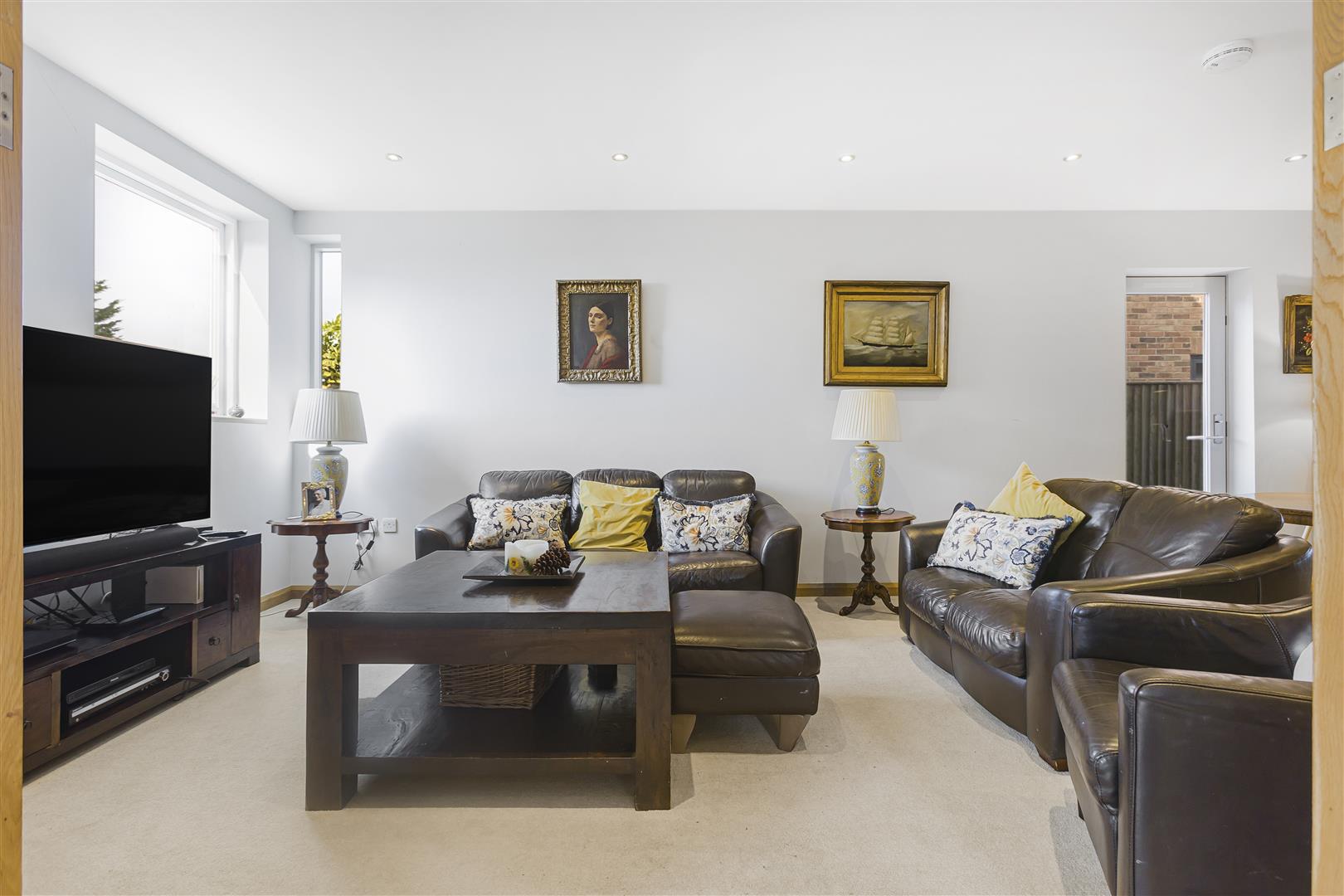 The sitting room has double doors that lead both from the hallway and the family room creating an open plan feeling that works well for contemporary family living.